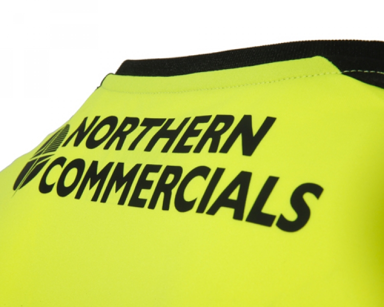 Featuring a round collar, the design has a single black stripe down the arms. Whilst the front of the shirt is hooped, the back is plain yellow; allowing the black Football League lettering to be clearly shown. The now familiar logo of club partner Northern Commercials appears on the back of the shoulders once again in 2016/17.