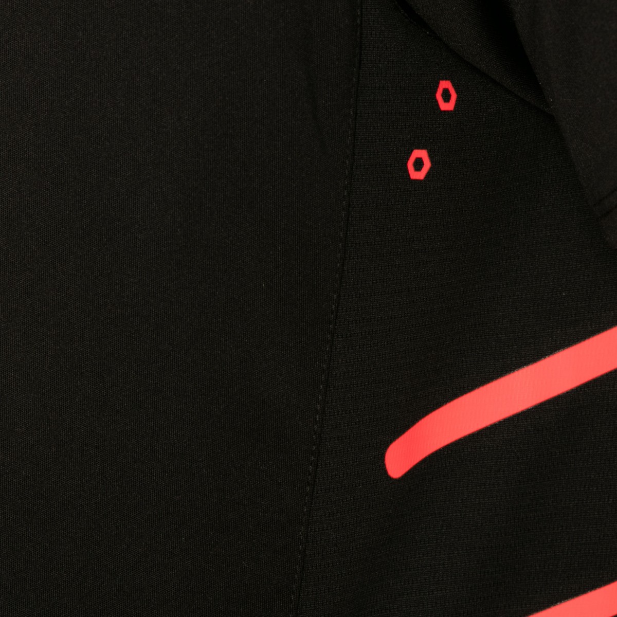 The shirt’s design has been developed using the latest heat bonding technology. It features body mapping mesh to key zonal areas of the shoulders, running the full length of the back into the lumber panel, and reinforced bonded seams down the side panels and shoulders to increase comfort and reduce friction compared to traditional fabric constructions. Laser-cut and bonded eyelets placed to the under arms further aid airflow around the body. The jersey is finished with a silver-tipped shaped crew neck collar.