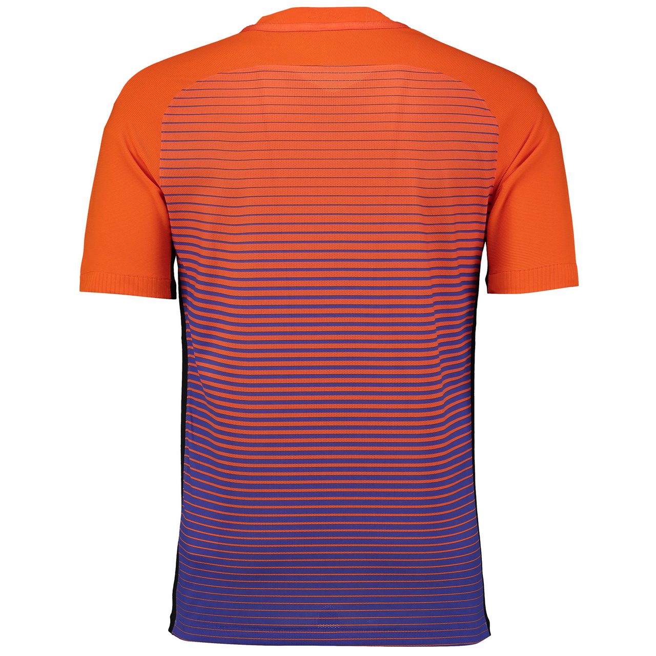 Violet first appeared on City’s 1992 away shirt and also featured in the 2007-08 and 2014-15 versions. This season, orange horizontal lines overlay the shirt’s violet base.