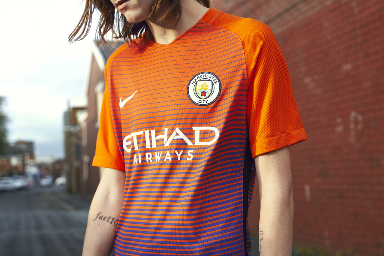 Combining a bold violet with orange, City will sport this distinctive look for the first time against Swansea City in the third round of the English Football League Cup, as well as on their travels in the Champions League and FA Cup, for the remainder of the campaign.