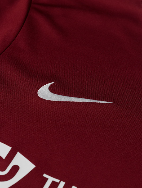 The new claret home shirt features a warp-knit mesh back to aid ventilation and is made from Nike’s latest Dri-FIT materials. The shirt is complemented with white shorts and claret socks.