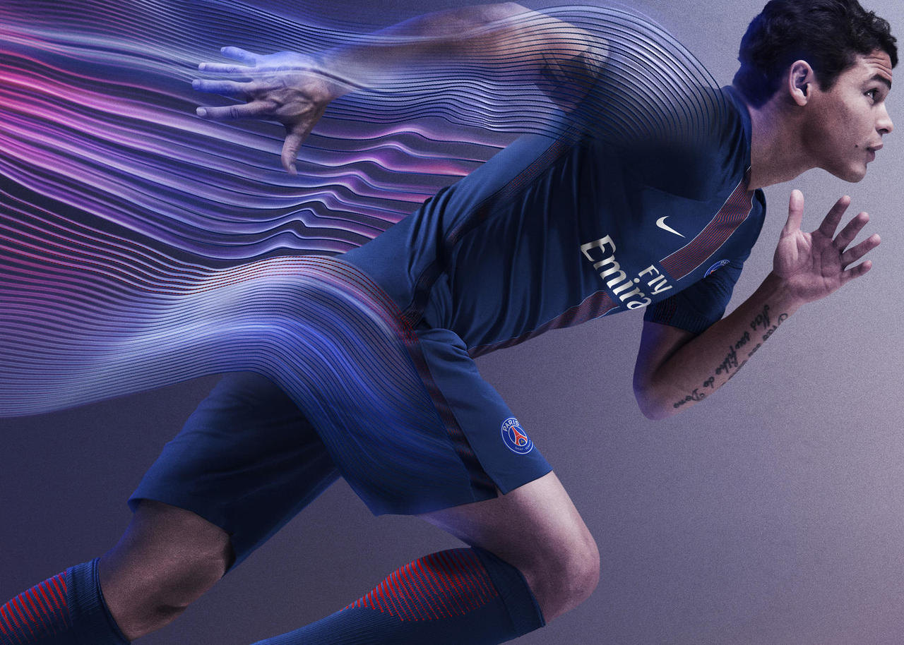 The subsequent bold graphic celebrates the history and DNA of the Paris club, while the shirt’s sleeves and shoulders feature a contrasting agility rib fabric. With subtle stripes in two tones of blue, the textile creates a color shift when players are in motion.