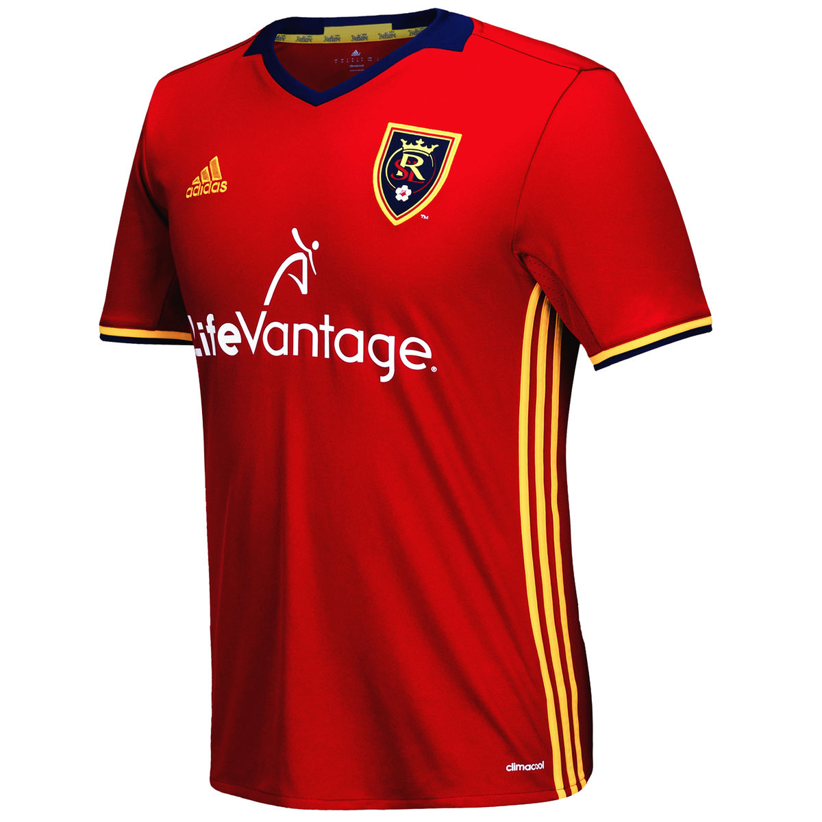 This is the new Real Salt Lake 2016 Home football shirt by Adidas. This one's another sleek take on the claret and cobalt, with small details updating the existing jersey's classic look.