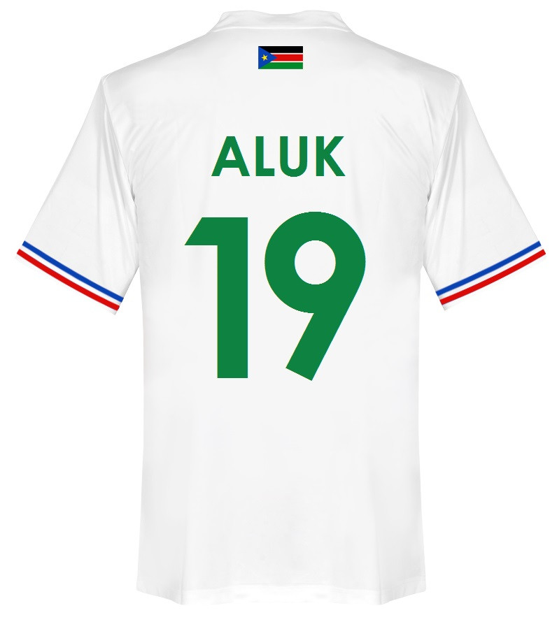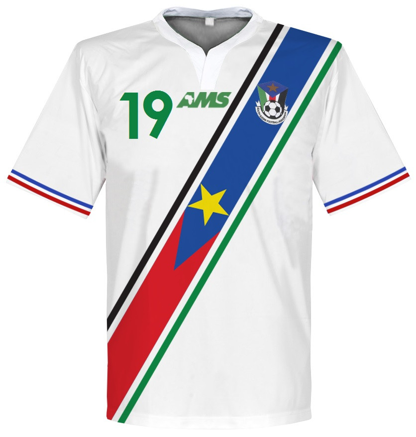 This is the new home shirt of the Bright Stars, the national football team of South Sudan.