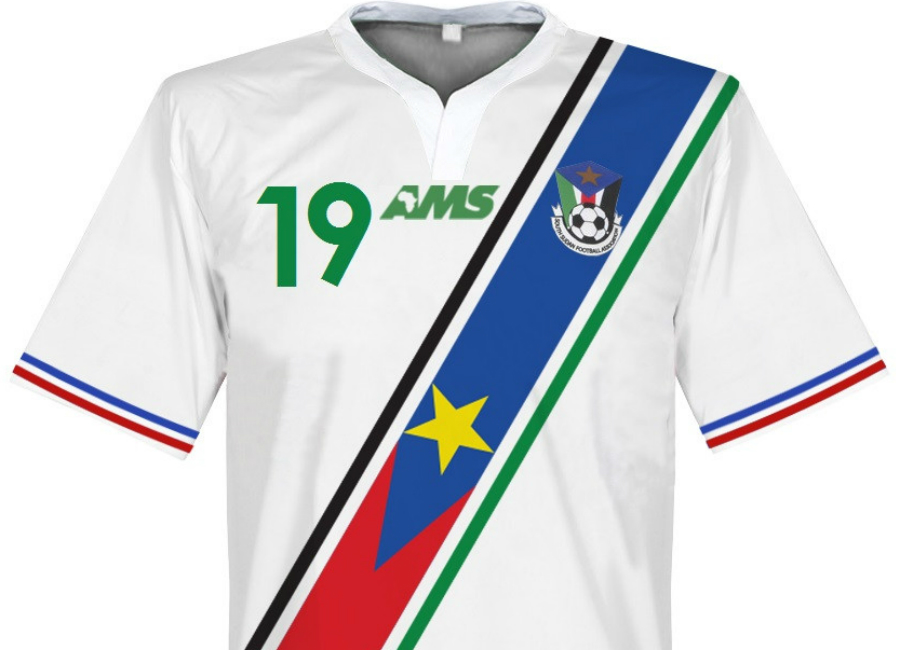 This is the new home shirt of the Bright Stars, the national football team of South Sudan.