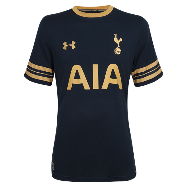 The Away Shirt features the navy blue of Tottenham Hotspur detailed with a gold Spurs badge, gold Under Armour logo and a gold AIA shirt logo.