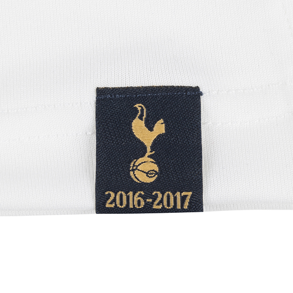 The Home Shirt features the white and navy blue of Tottenham Hotspur. The navy blue contrast is complimented by the gold trim on the v-neck along with the navy blue and gold details on the sleeves. The Spurs Home Shirt is embossed with an AIA logo on the front.