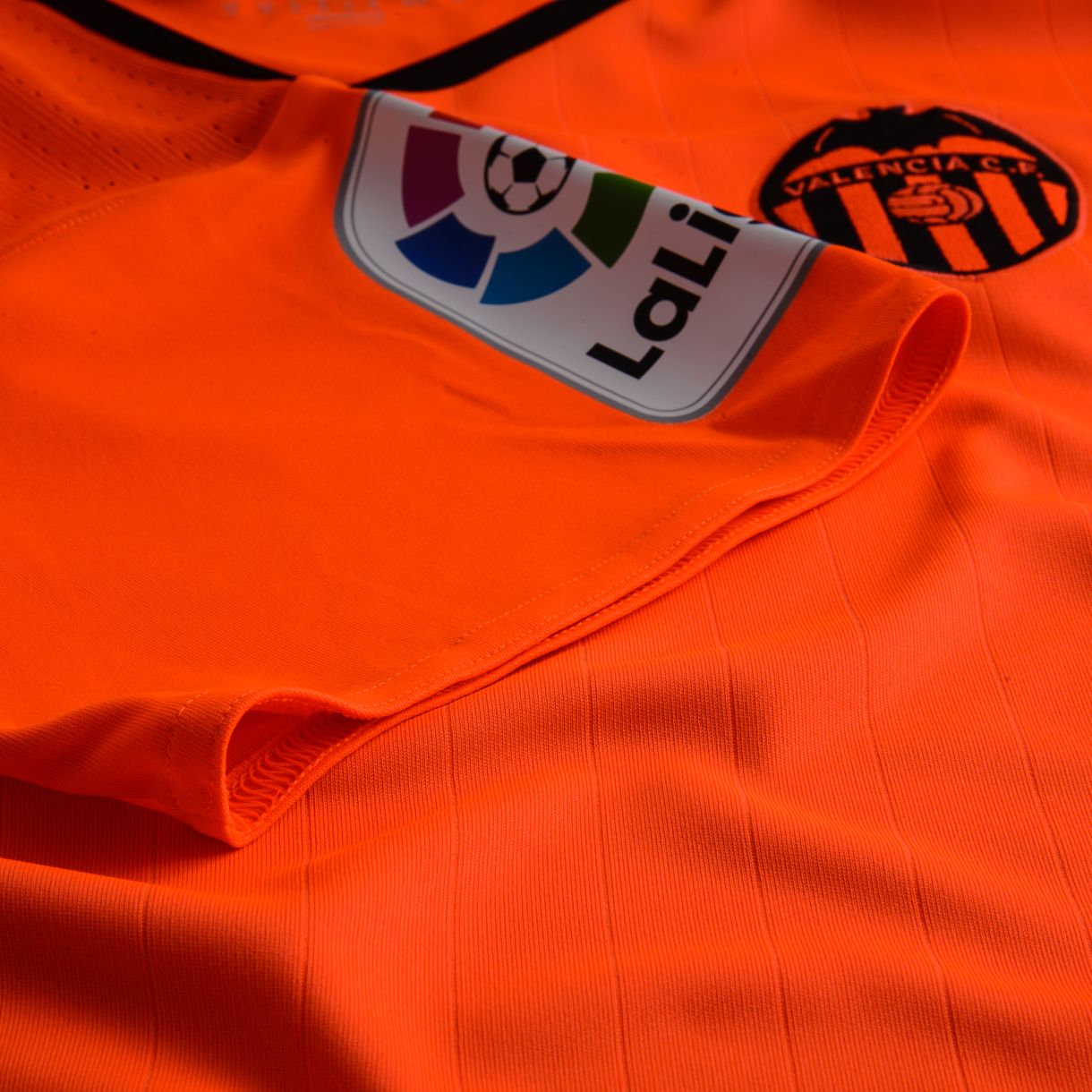 Manufacturers adidas have opted for a ‘Solar Orange’ shirt in fluorescent colouring, contrasting with black details.The black collar used for the Cup kit is a ‘V-Neck’, different to the home and away shirts. The traditional three adidas stripes are located on the shoulders and the detail of the bat with the club’s founding year of 1919 on the back of the neck remain. The Valencia CF badge is embroidered on the shirt in monochrome. Always at the forefront of quality, adidas have designed a kit produced with the latest climacool technology, using a fabric that optimises comfort and performance through its ventilation system and expulsion of sweat and heat.