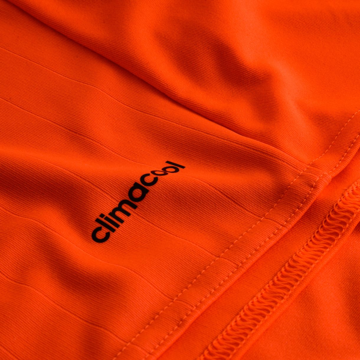 The fluorescent orange of the shirt is carried over to the shorts, with the black details of the adidas logo and the monochrome badge also remaining the same. The socks for the kit are completely new, and continue the orange theme.