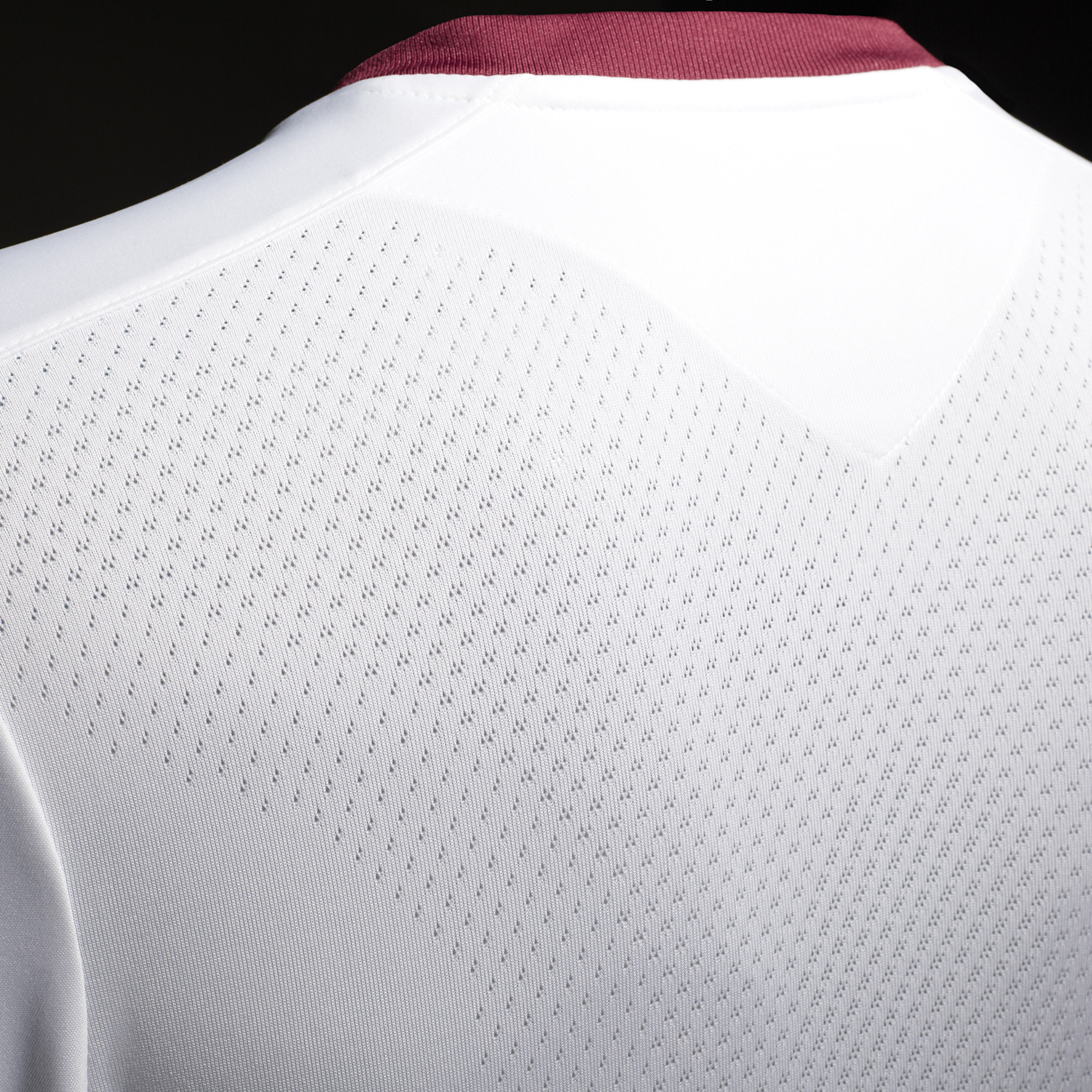 The colours of the 2016/17 away shirt are a throwback to the past glories of West Ham’s 1980 FA Cup final victory, and best ever top-flight season in 1986, with a lightweight white shirt and sky blue and claret around collar trim.