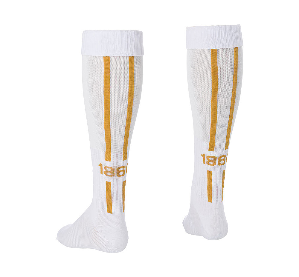 The 1860 München Oktoberfest match shirt comes in white with gold details. An elegant tone-on-tone enhanced texture is on the front and back, and the sleeve cuffs are knitted. The shoulders and sides feature mesh inserts ensuring maximum breathability and keeping you nice and fresh.