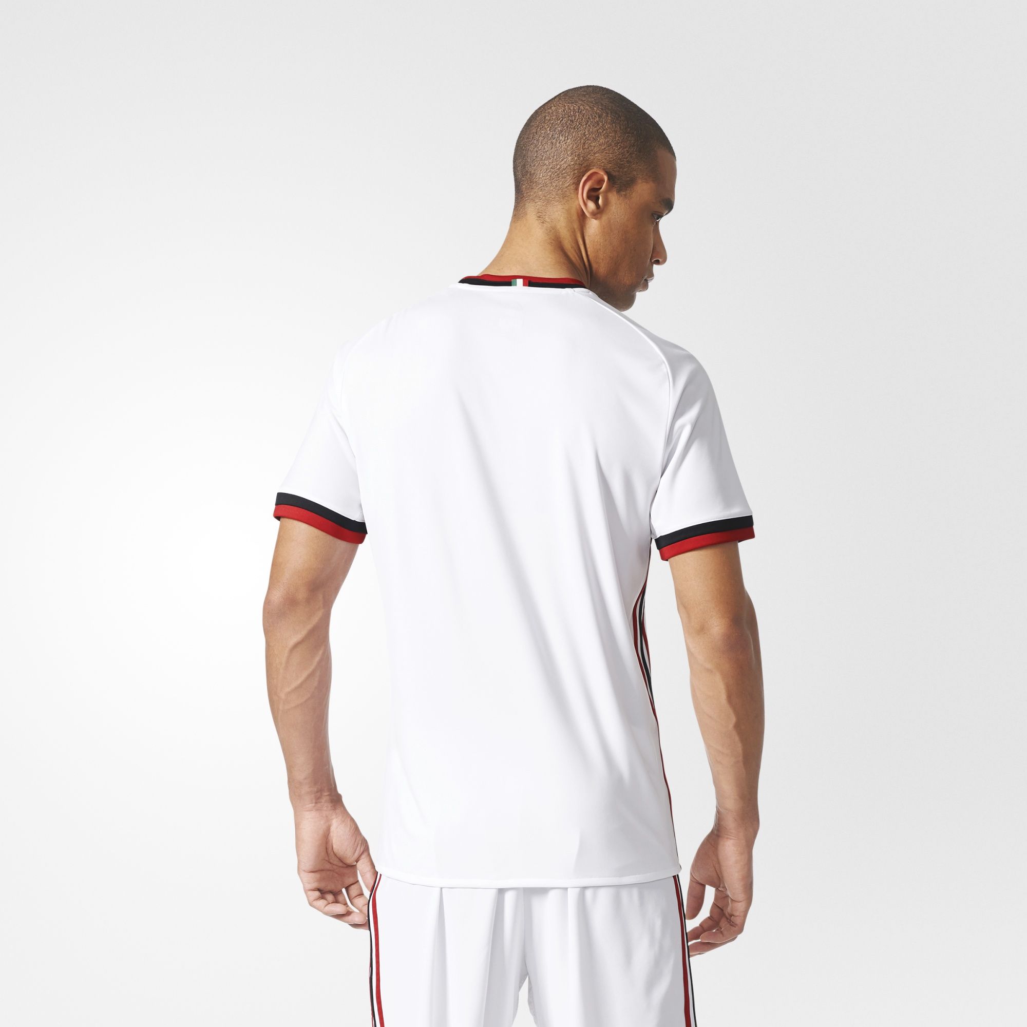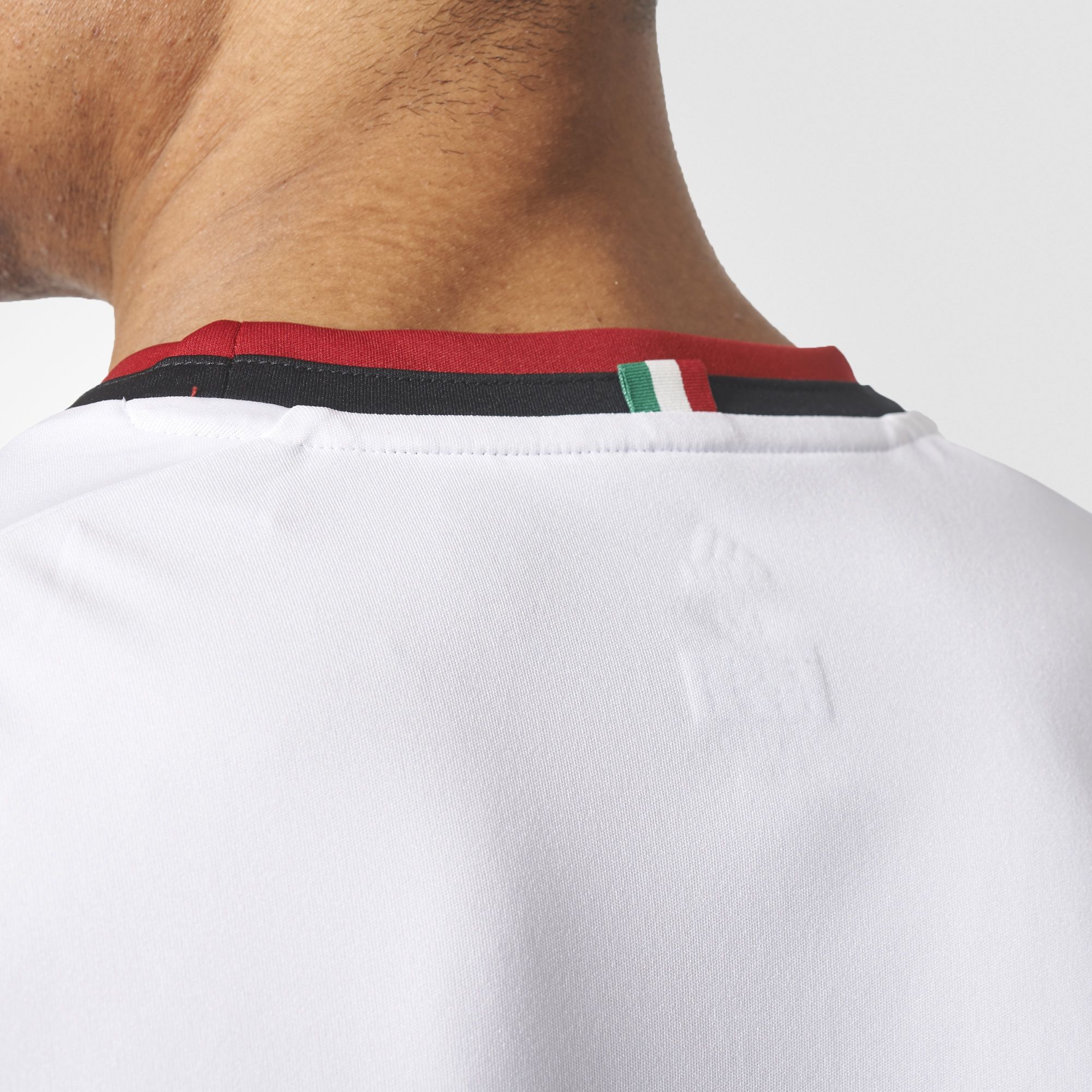 While innovating on style, the new away jersey nods to the dominant history of the Rossoneri. The white shirt features two-tone red and black stripes, famously seen in the UEFA Champions League winning jerseys of 2002/03 and 2006/07. The design of the collar and cuffs also pays homage to the 1966/67 jersey.