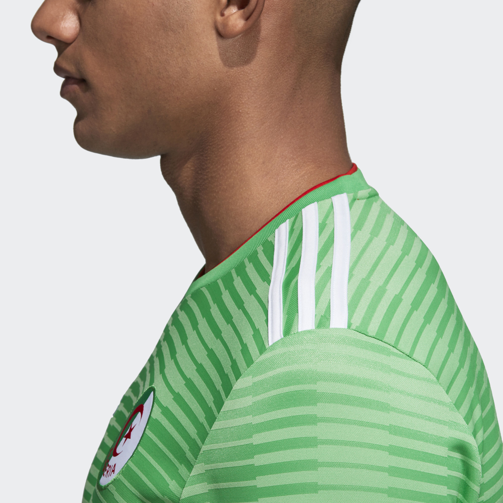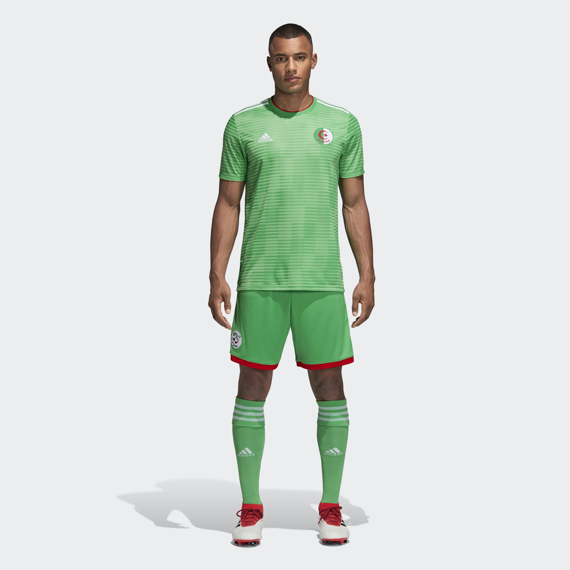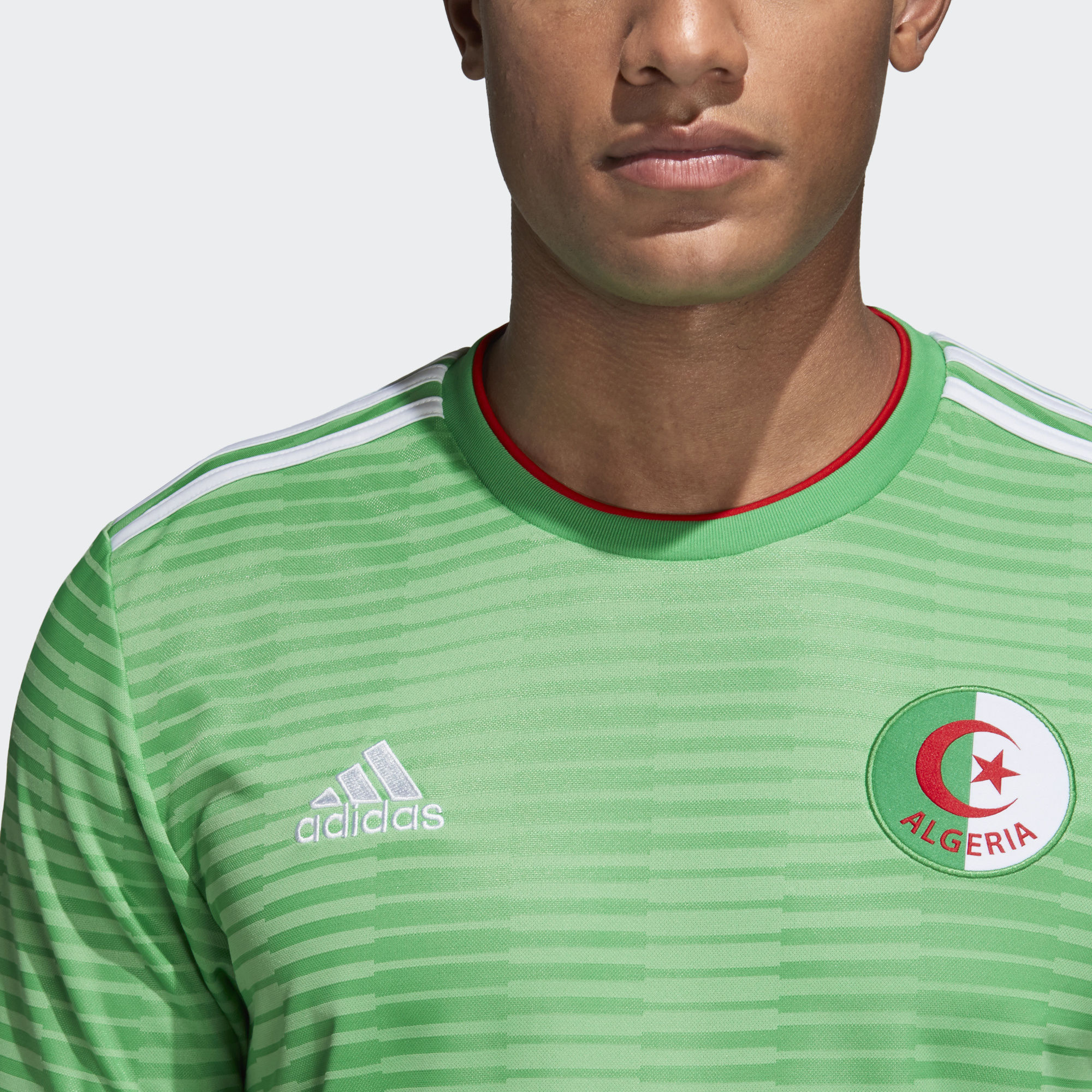 Displaying a fresh take on Algeria's classic green away colours, this Algeria 2018 Adidas Away shirt is based on the one the national team wear when they take on rivals. Made of sweat-wicking Climalite, it features a ribbed crewneck and a woven team badge.