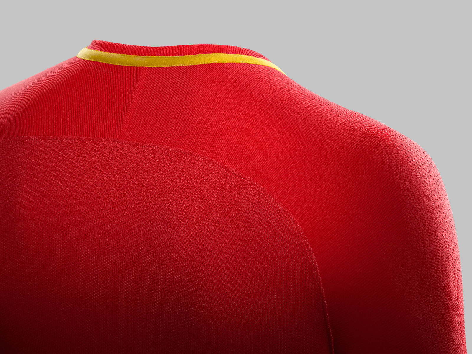 The sides of the kit feature a white stripe that runs the length of the shirt and white shorts. Expanding when the player is in motion, the stripe maximizes ventilation.