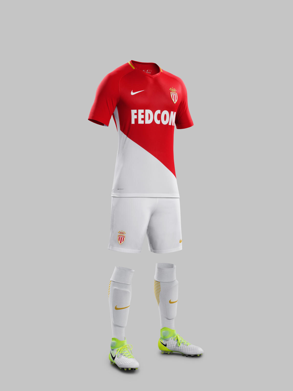 The new AS Monaco 2017/18 home kit by Nike is an update of the club's signature red and white colors with gold detailing.