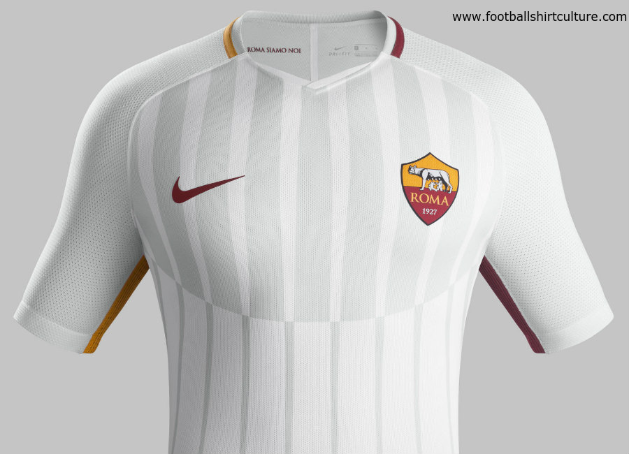 AS Roma’s new away kit for 2017-18 combines classic styling and a palette of white, yellow and red, with Nike Dri-FIT technology.