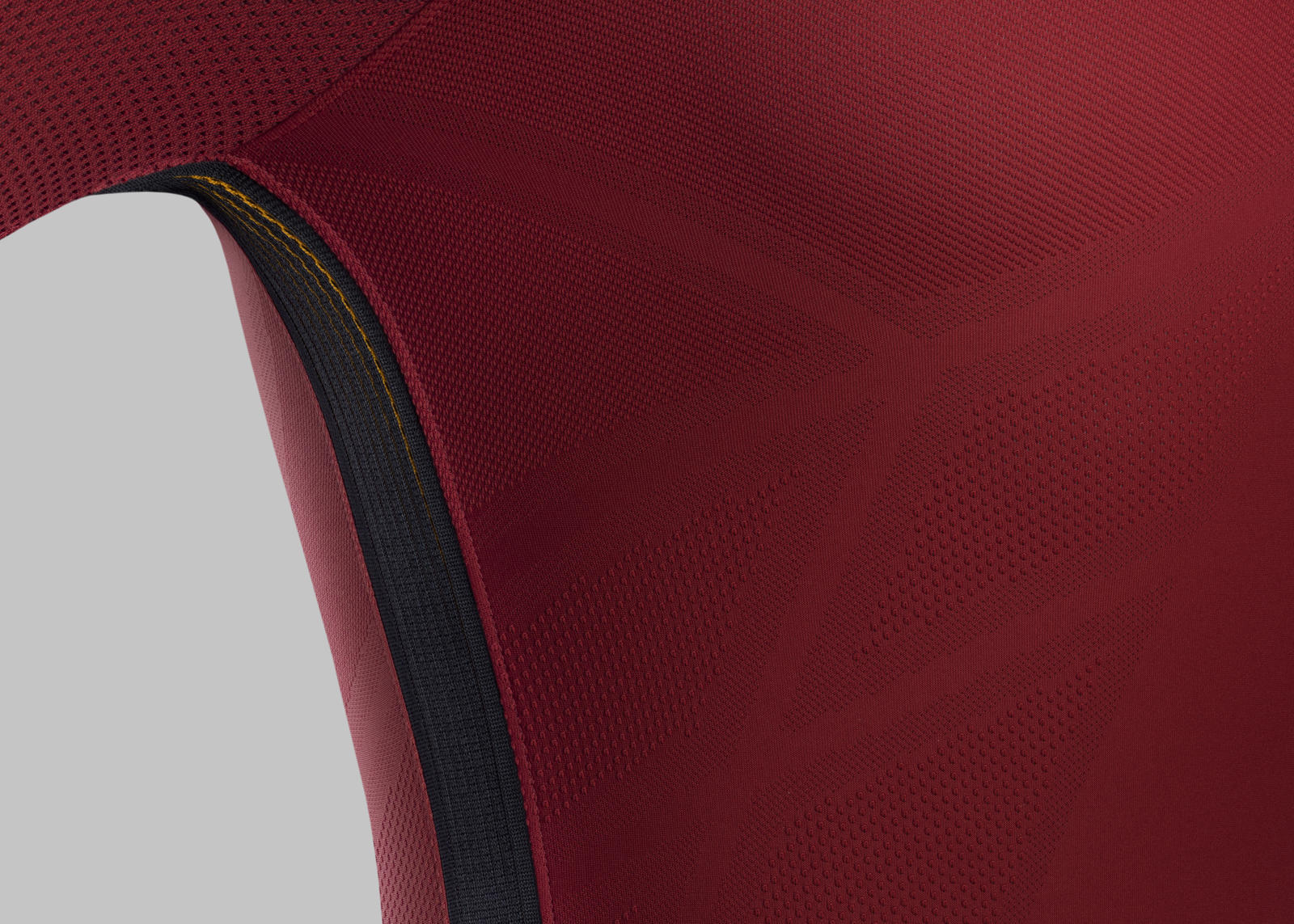 The seam, starting from the collar-bone, emphasizes the silhouette of the shoulders and converges with the black fabric stripe running down the length of the kit. Expanding when the player is in motion, the black stripe maximizes ventilation and reveals a subtle yellow flash.