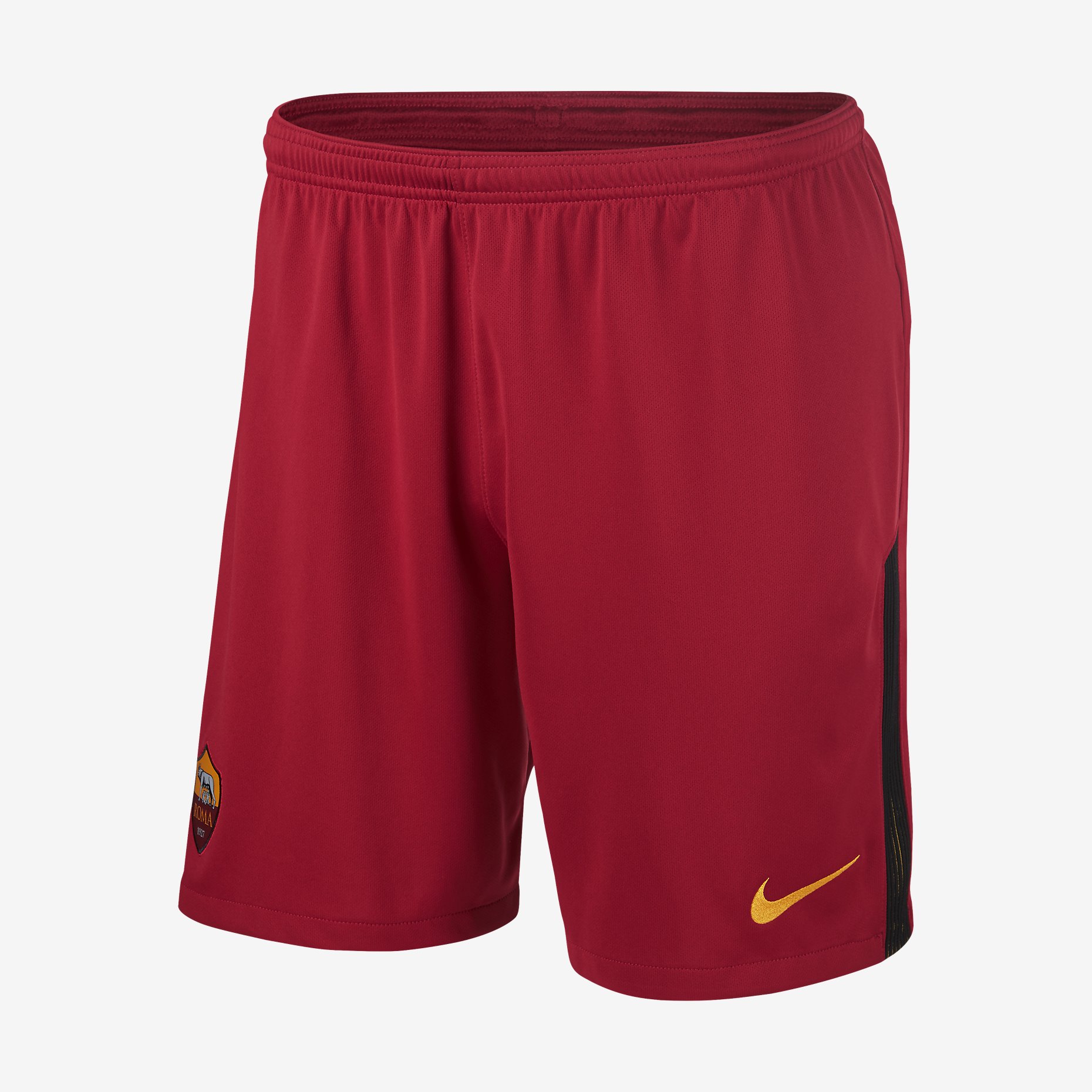 The shorts are red with a black band on either side. The AS Roma crest is on the right, with the yellow swoosh on the left.