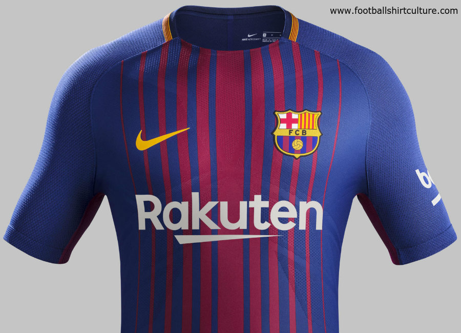 This is the new FC Barcelona 17/18 home kit by Nike. For the first time the shirt will bear the name of Japanese company Rakuten, the Club’s new global sponsor from 1 July.