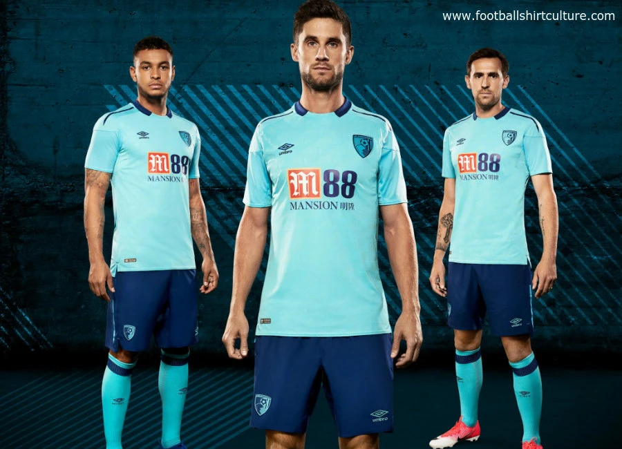 A unique pattern adorns the details of the neon blue shirt, inspired by the club’s crest to make it a bespoke design, as well as the AFCB lettering in the neck at the back of the shirt. Contrasting with the shirt's main colour is the navy blue trim, with the same shade making up the shorts.