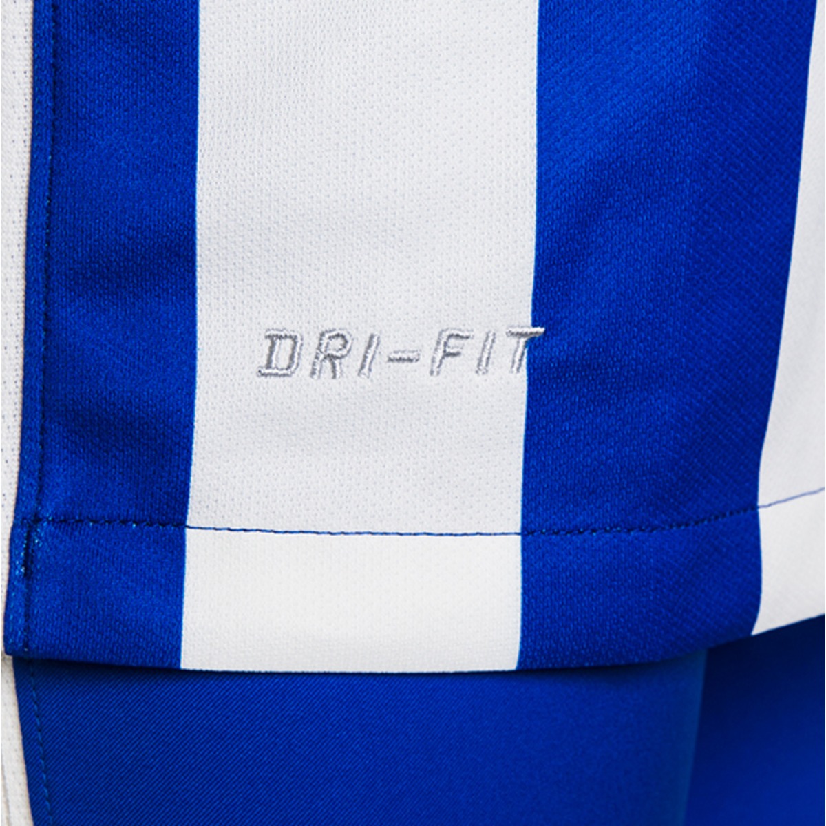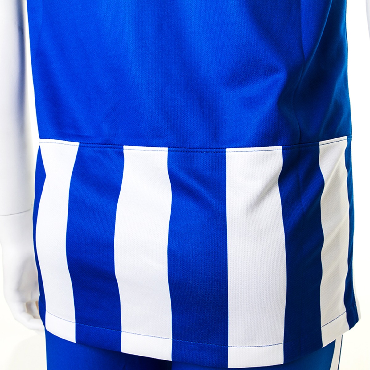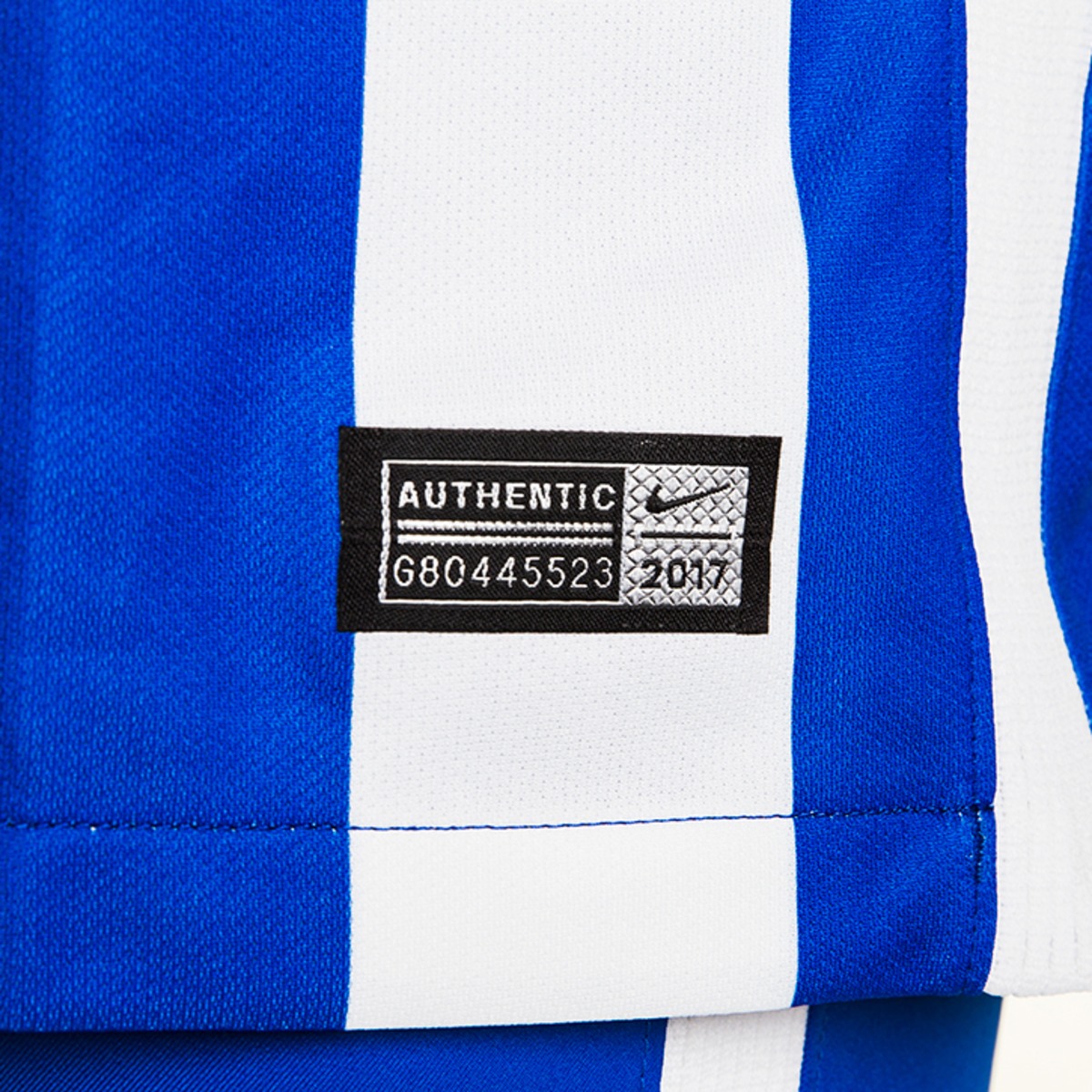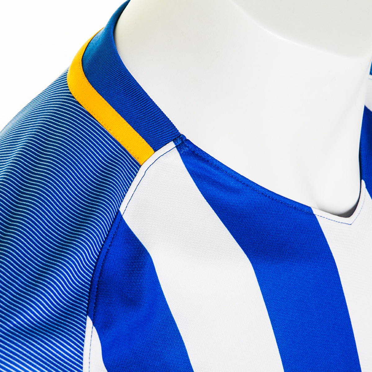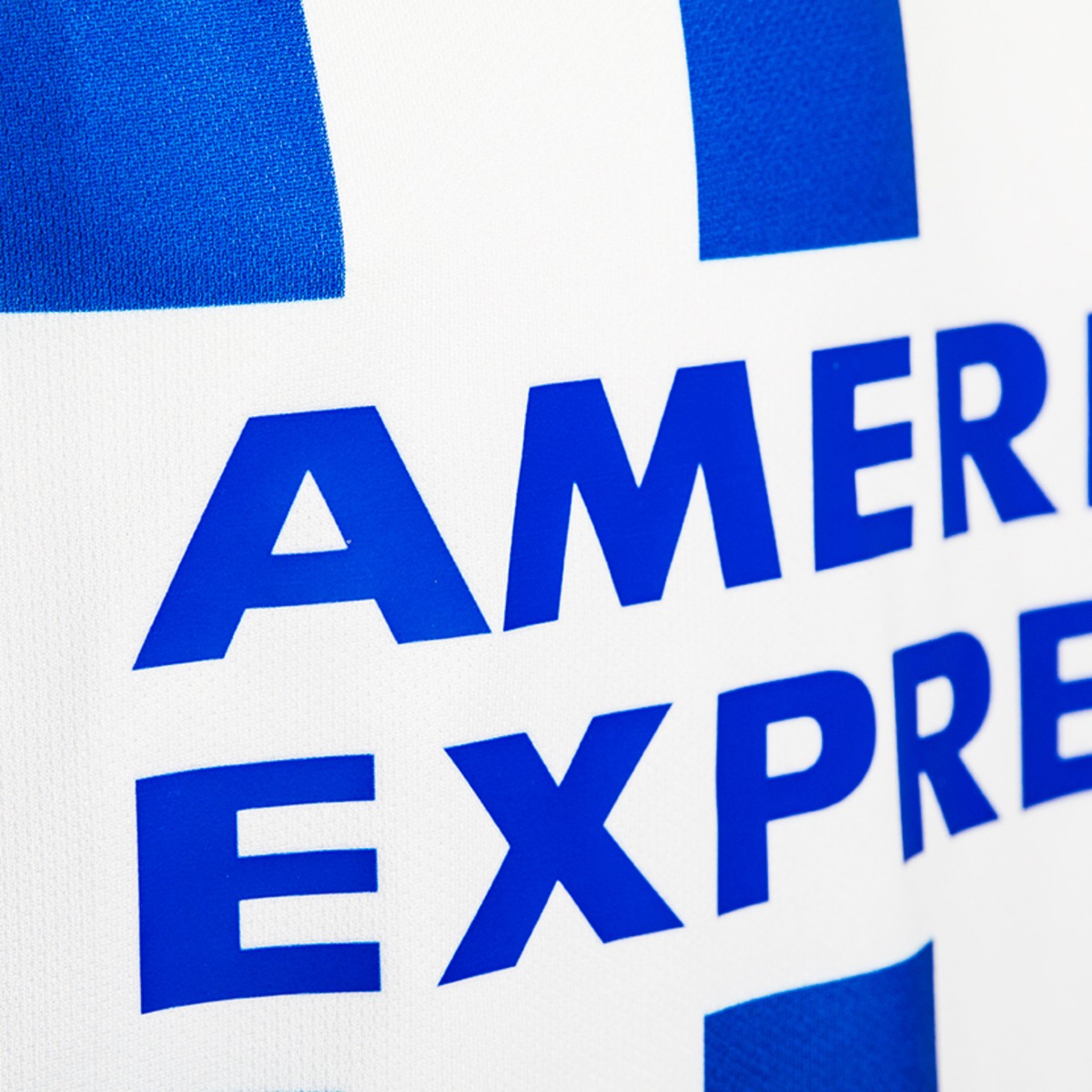 Brighton & Hove Albion’s new home kit for the club’s first season in the Premier League was revealed today. The new home shirt retains the traditional blue-and-white design, including a blue back and a yellow Nike swoosh.