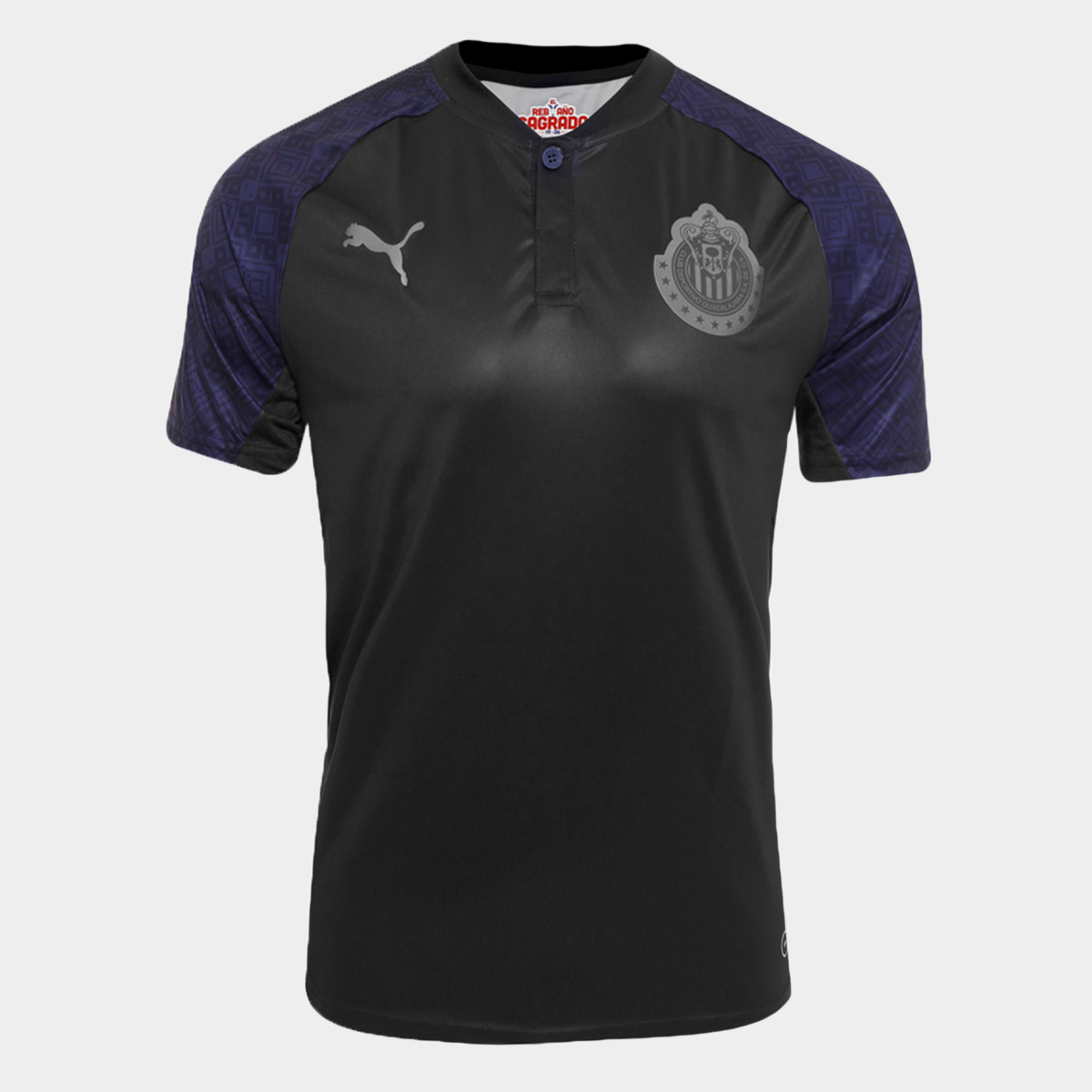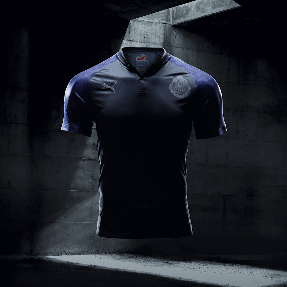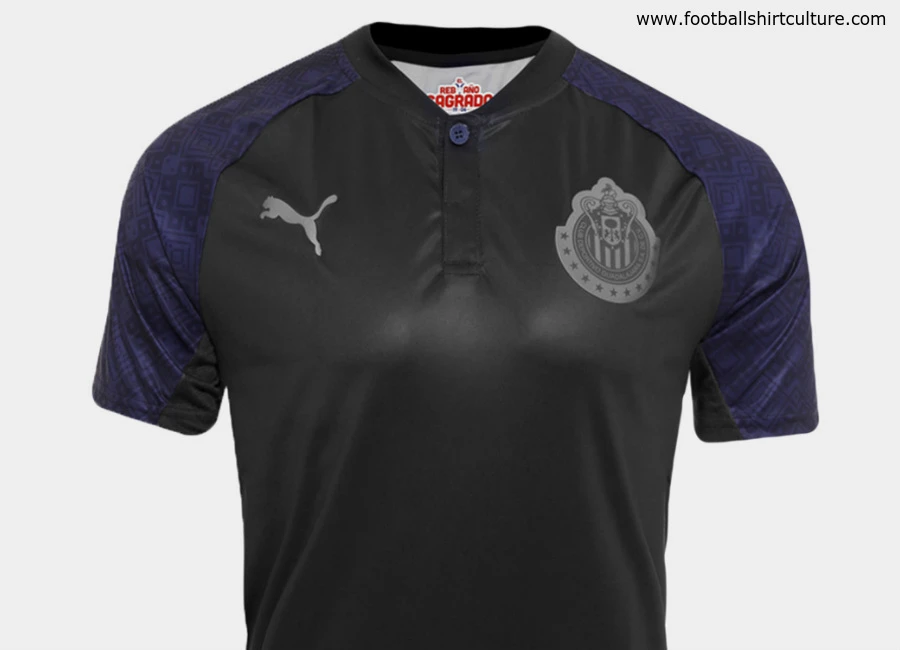This is the Chivas 2017-18 away football shirt by Puma which features sublimated Huichol art on the sleeves, while a Mexican flag stands proud on the top back.