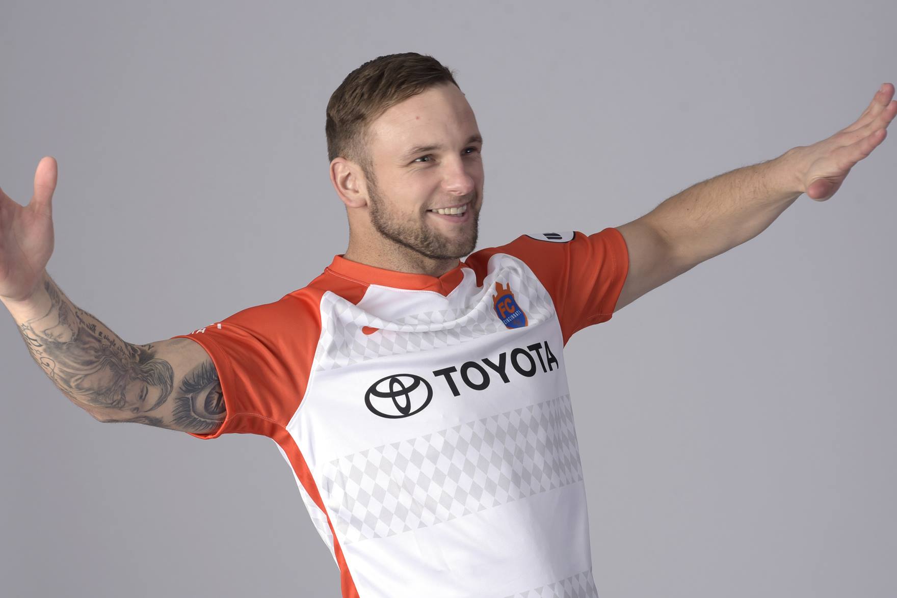 But instead of the simple color blocks found on the old away kit, they switched it up going with hoops of color instead. And embedded within those hoops is a nod to the City of Cincinnati's Germanic heritage, and a theme extremely popular with our supporters: Bavarian diamonds.