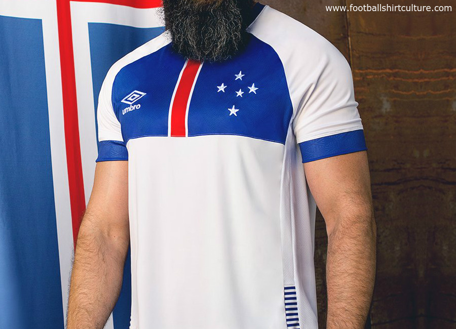 The Cruzeiro 2018 "Blár Víkingur" Umbro football shirt is part of the Umbro Nations collection which celebrates the 2018 World Cup. This Cruzeiro shirt pays homage to the Island national football team.