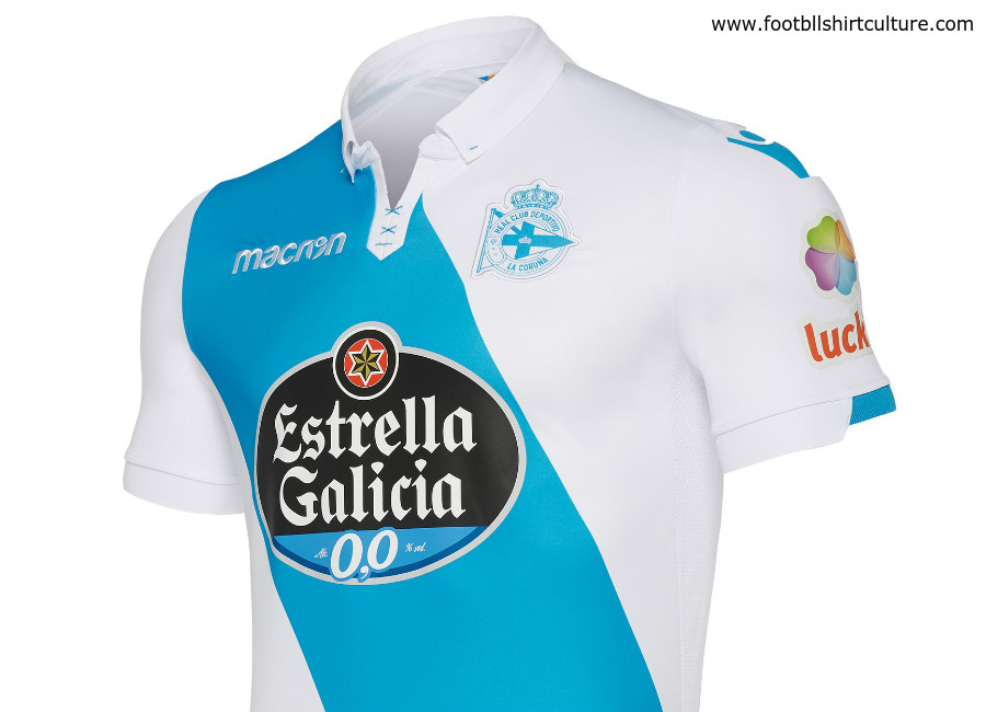 The Macron logo stands out in white on the top right-hand side of the front of the shirt, while the left-hand side carries the club’s single-colour patch. The pale blue Macron Man on the shoulders underlines the attention to detail. On the back of the shirt, just below the neck, is the Galizia flag.
