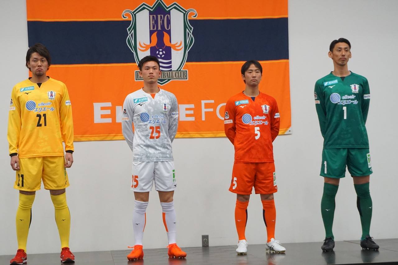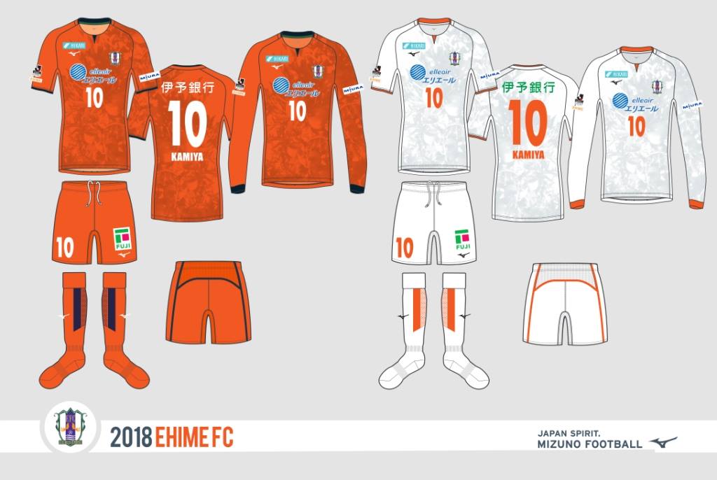These are the new Ehime FC 2018 home, away and goalkeeper kits by Mizuno.