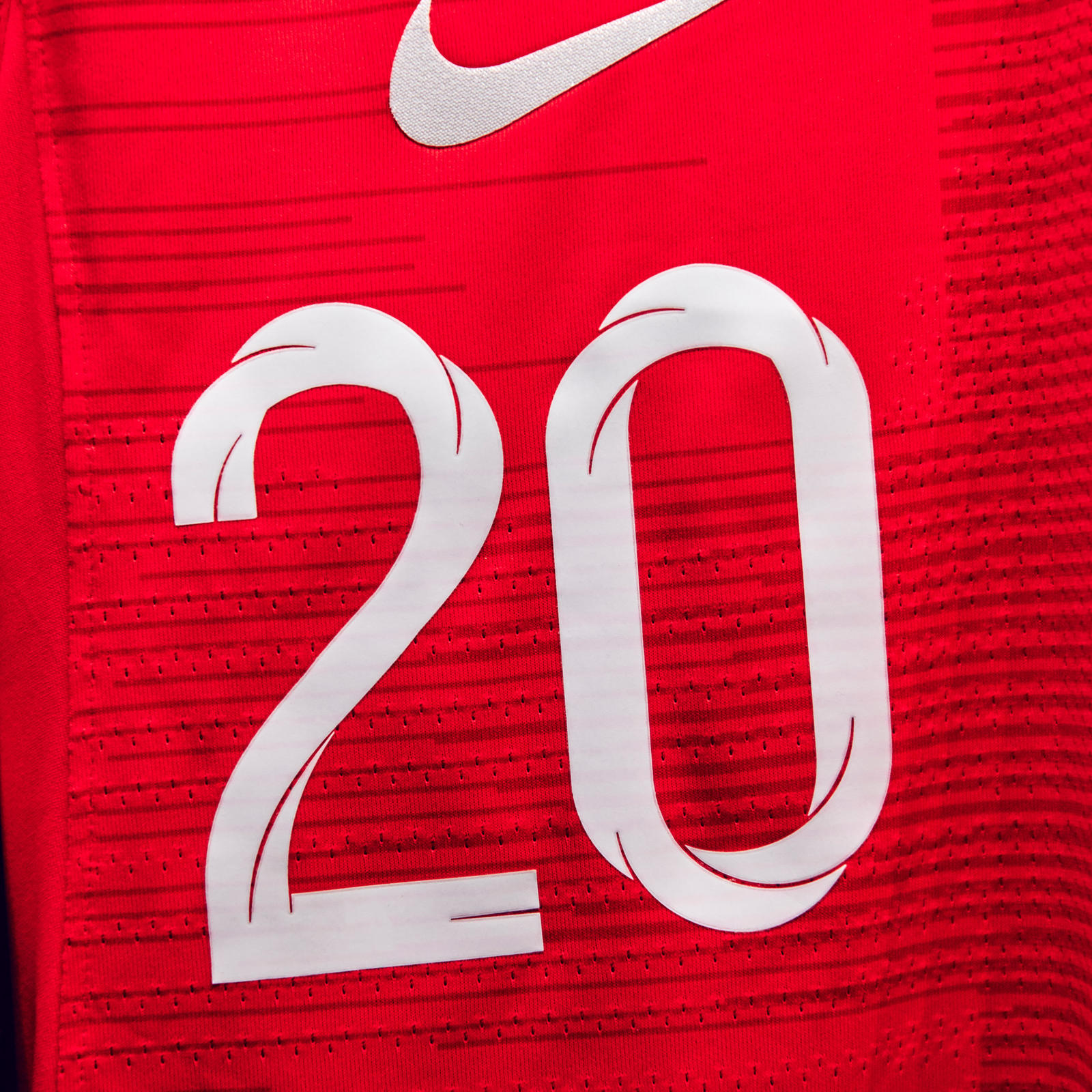 The custom typeface used for player names draws from Johnston and Gil Sans, both quintessentially English fonts (the former with overground transport and the latter for association with London’s underground). The player numbers (which are backed by anti-cling nodes because athletes mentioned that previous number applications had caused the shirt to stick to their backs during extreme heat) have been moved from the center of the shirt to a more breathable zone below the crest.