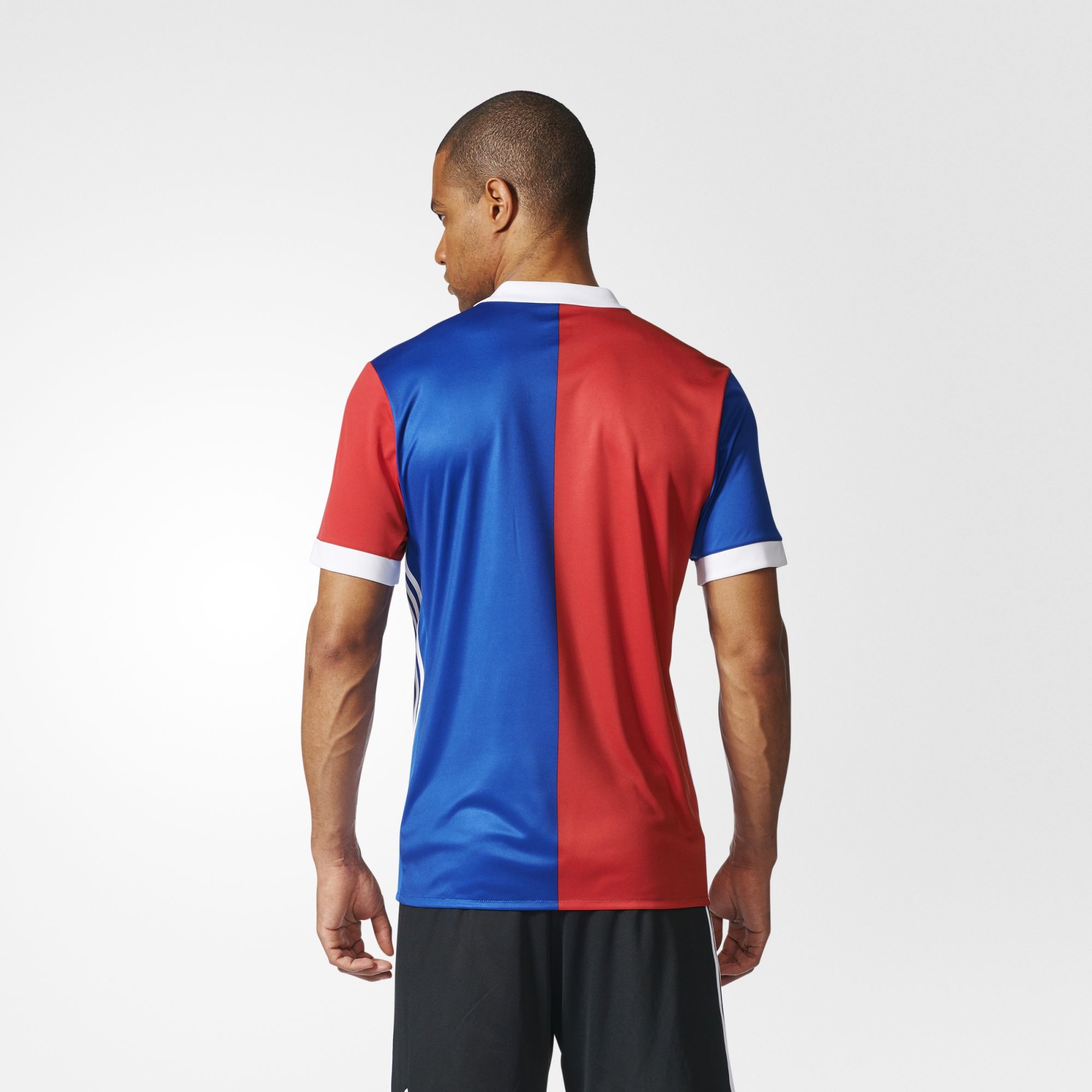 This is the new FC Basel 17/18 home kit by Adidas. The 2017-18 version of the home shirt extends the classic red and blue contrasting design to include the sleeves, with alternating colour blocks mimicking the iconic FCB crest woven in to the chest.