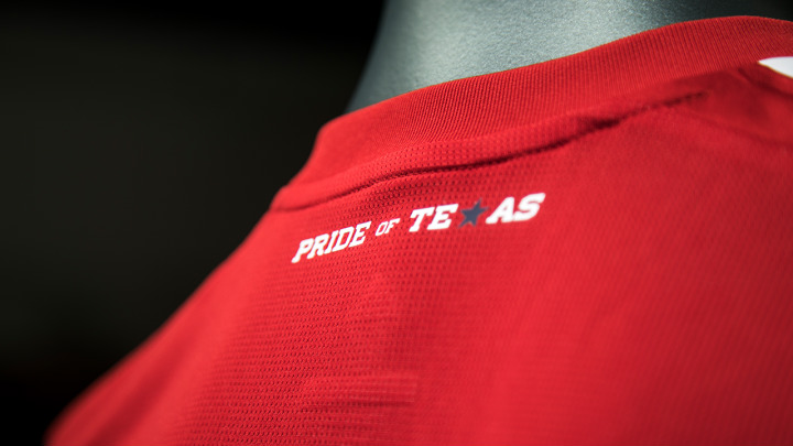 The jersey features red, white and blue color-blocking inspired by the Texas flag.