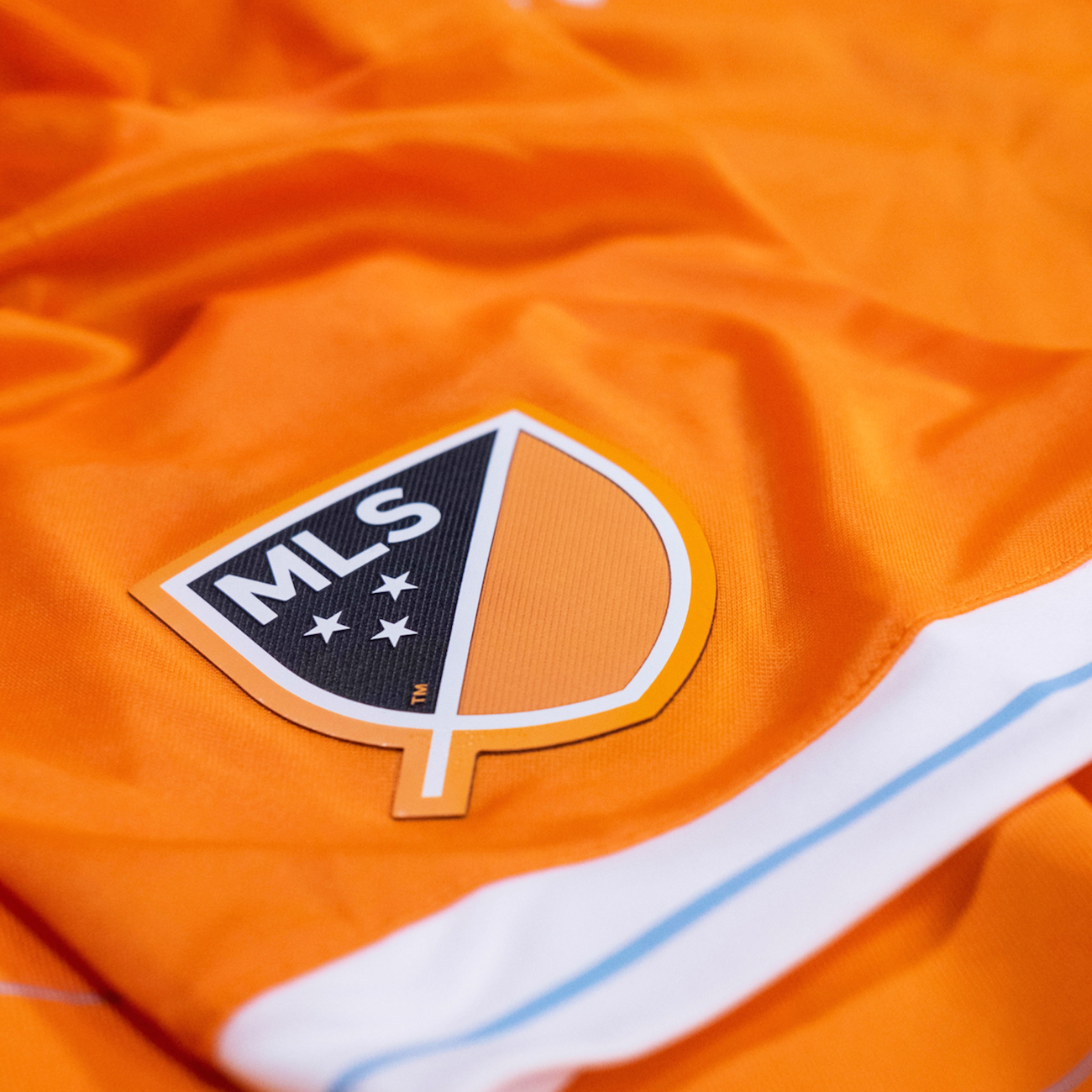 Space City Blue returns to the home kit for the first time since 2010, with blue horizontal pinstripes accenting the club’s traditional orange shirt.