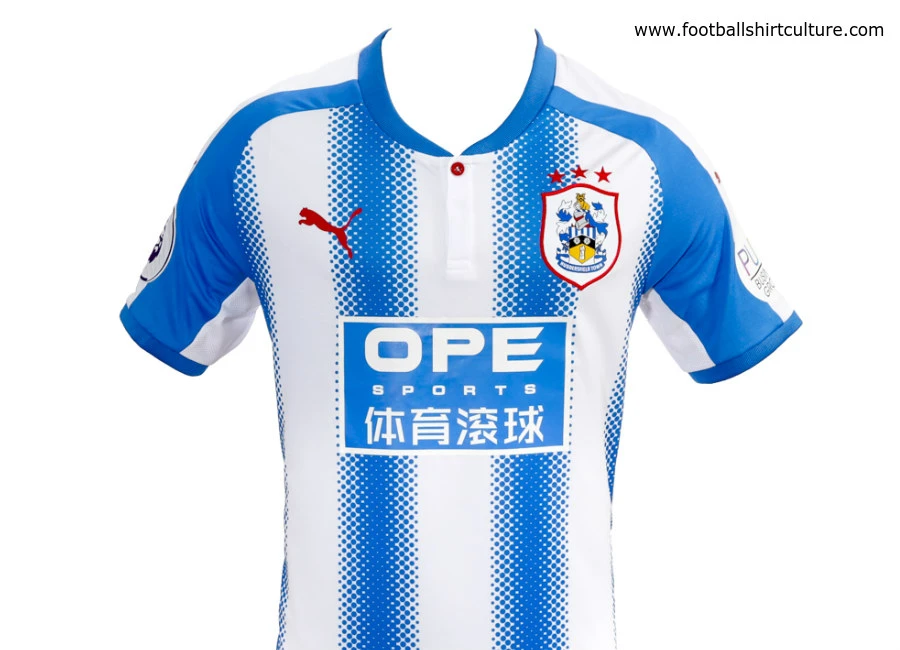 The new shirt, which features the distinct logo of new shirt sponsor OPE SPORTS and sleeve sponsor Pure Business Group, is a new take on Town’s traditional blue and white stripes, with a new bubble effect on the blue stripe from kit supplier Puma.