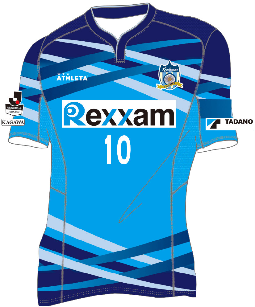 This is the new Kamatamare Sanuki 2018 home football shirt by Athleta.