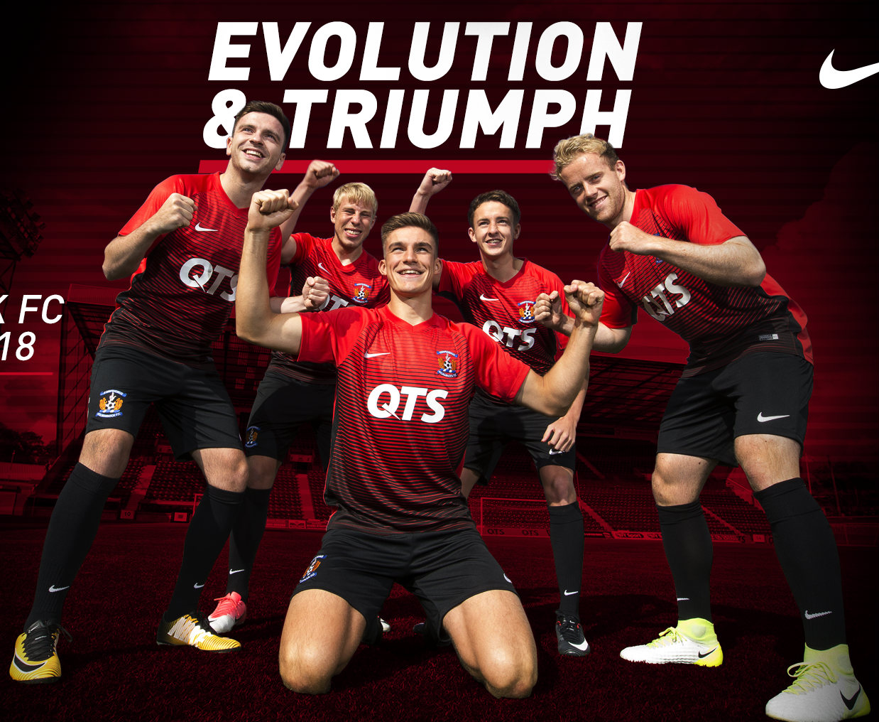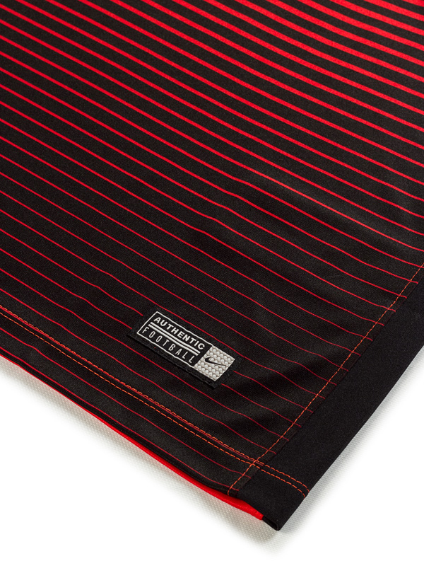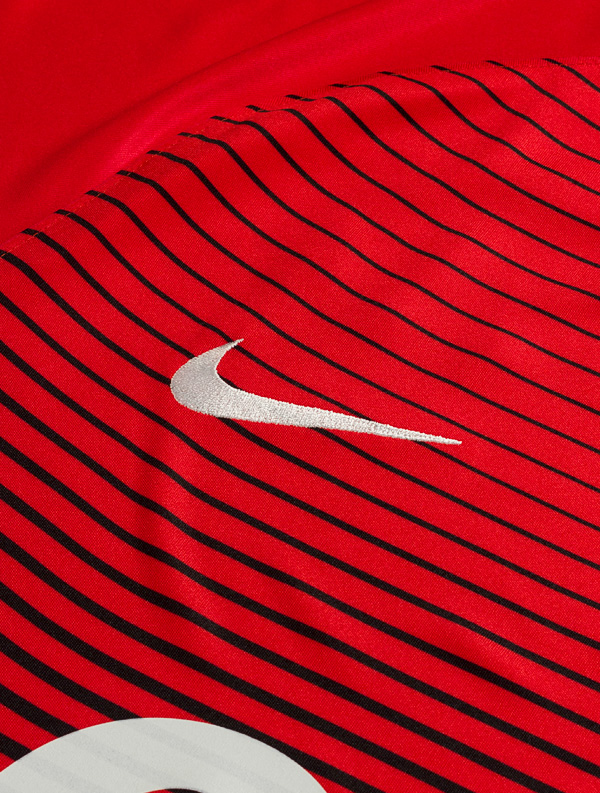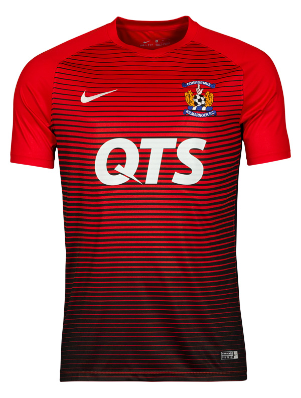 The new Kilmarnock away shirt has a slim fit design with raglan sleeves for a streamlined look. Made with Nike Dri-FIT fabric, the strip comprises red and black gradient stripes, which have been sublimated for long-lasting vibrancy. Differing slightly from the club's home shirt, the away shirt has a tapered ‘V’ neckline, for added comfort. The shirt is accompanied with black shorts and socks.