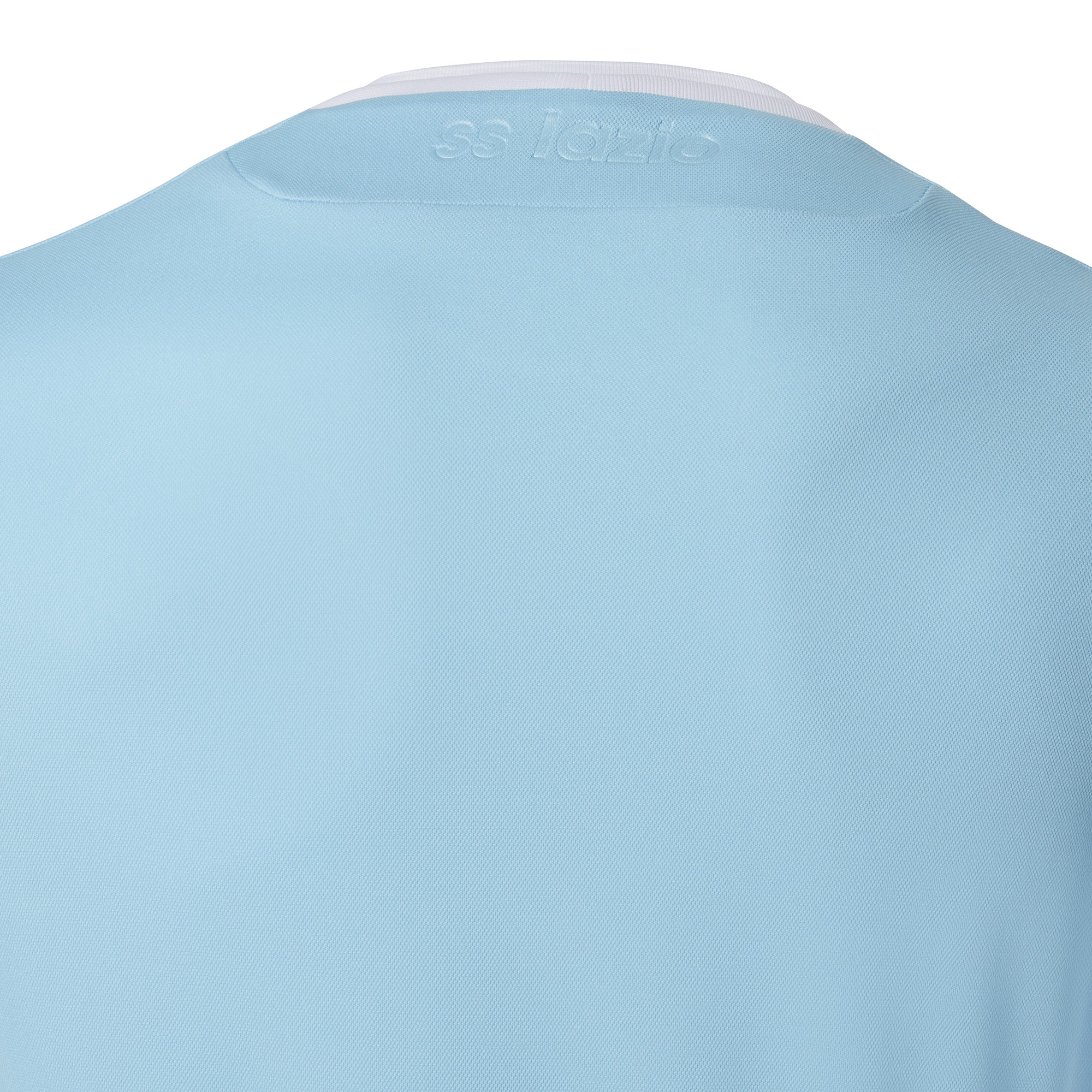The SS Lazio Home match shirt comes in pale blue, with some white and pale grey details on the neck and the bottom of the sleeves. Mesh inserts with laser cut details are under the sleeves, ensuring a comfortable, cool sensation and breathability.