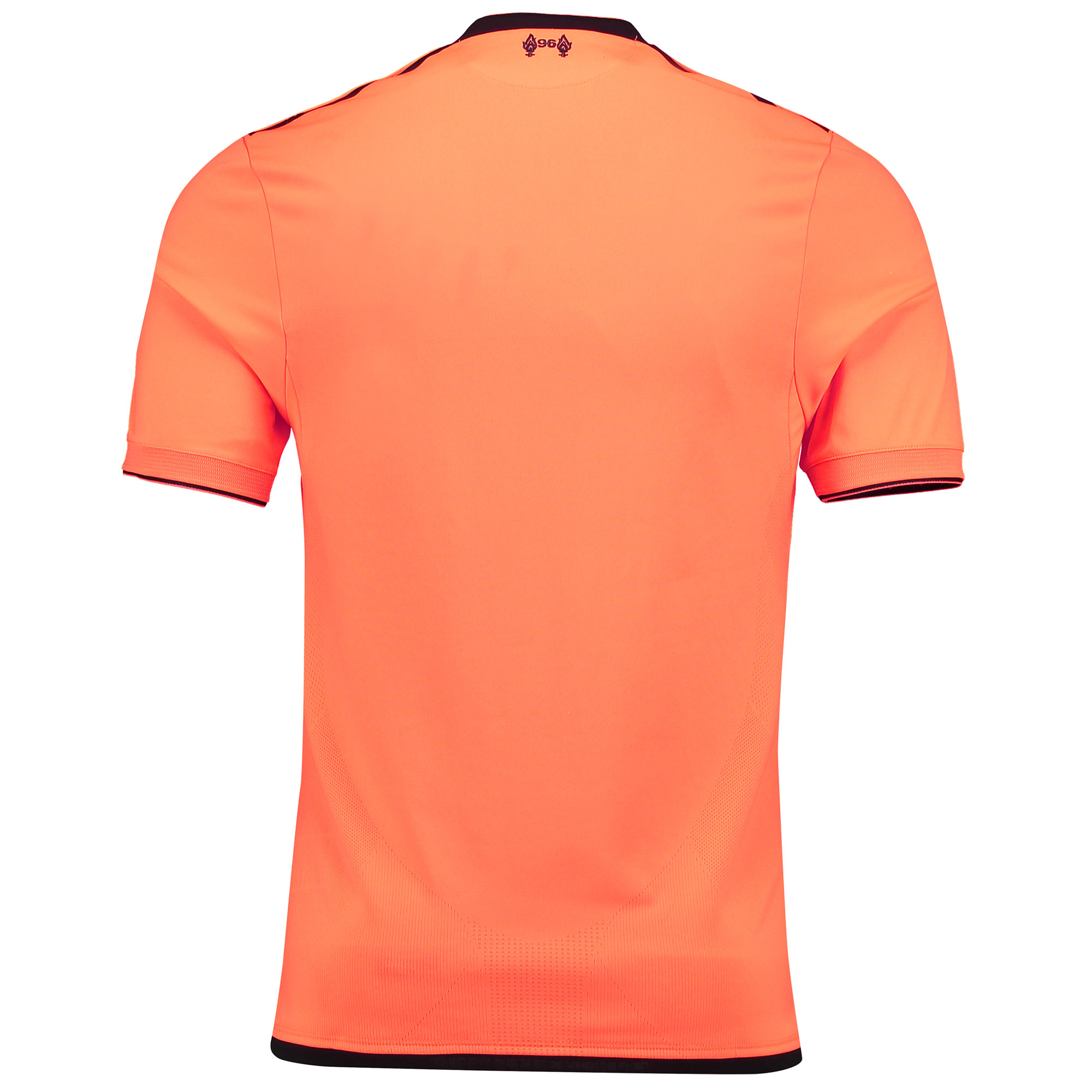 The elite Liverpool 3rd shirt uses shinspun interlock fabric with sweat wicking properties for a dry, comfortable feel. A 4 way stretch mesh yoke panel allows unrestricted, flexible movement while a body mapping cage reduces drag for greater speed. Ventilation is provided by laser cut self-actuating under arm panels.