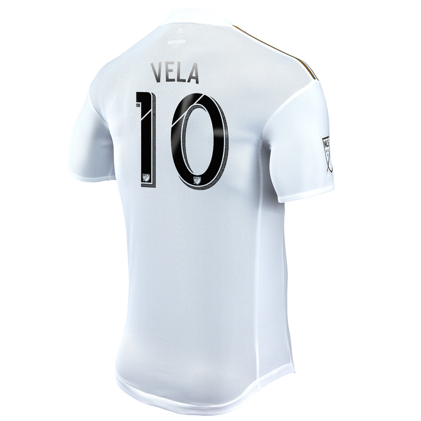 The Los Angeles FC 2018 “Inaugural White” away jersey by Adidas mixes LA’s Latin heritage with a print design that sits at the upper chest of the jersey.
