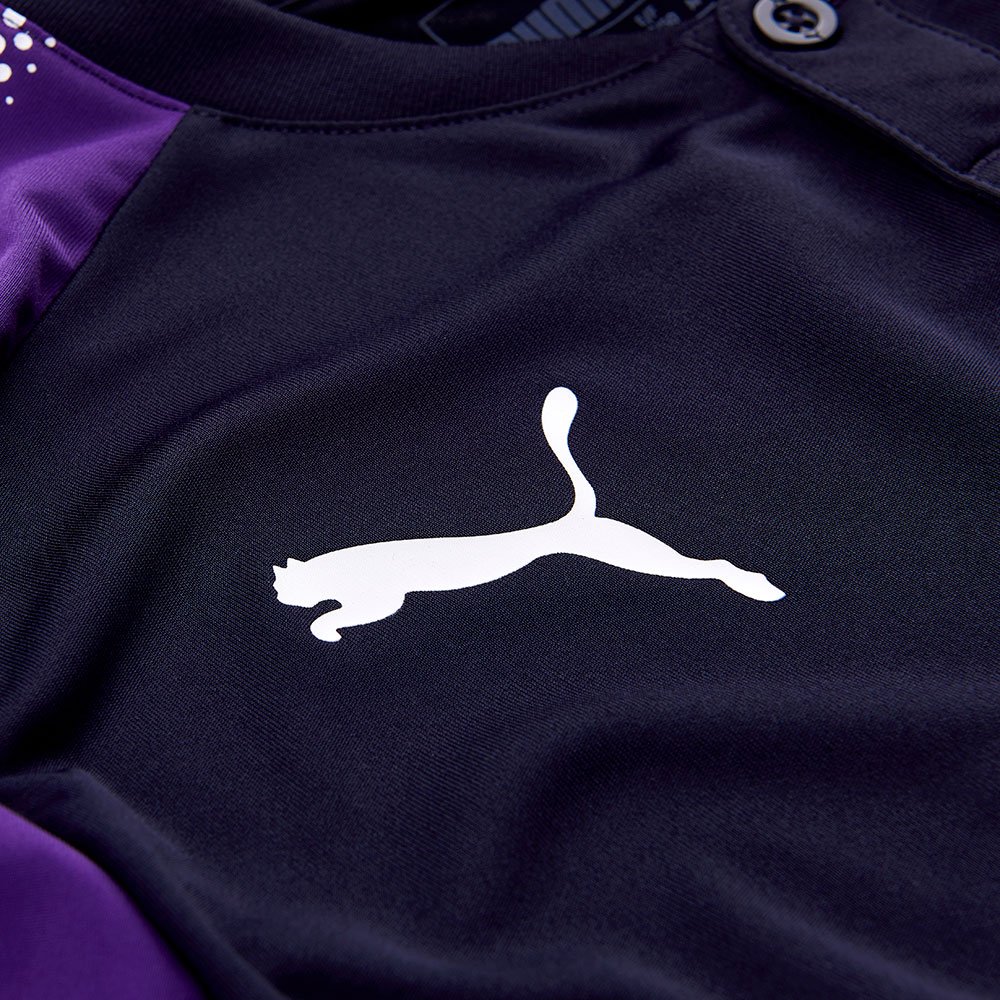 This new away kit is designed to maximise confidence, with the brand new ‘navy-black’ as the main colour, purple sleeves (a subtle nod to last year’s popular third kit) and orange tipping.