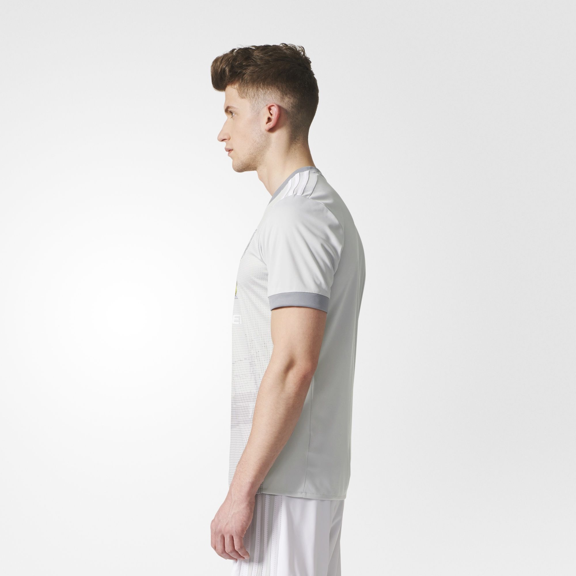 The kit, which will be worn during the 2017/18 season, represents the powerful bond between the team and the fans. The light grey shirt is designed with a graphic showing the silhouette of the famous 'Holy Trinity' statue outside Old Trafford. The statue of club icons Sir Bobby Charlton, George Best and Denis Law represents a golden era for the club and this unique history was the inspiration for the new third kit.
