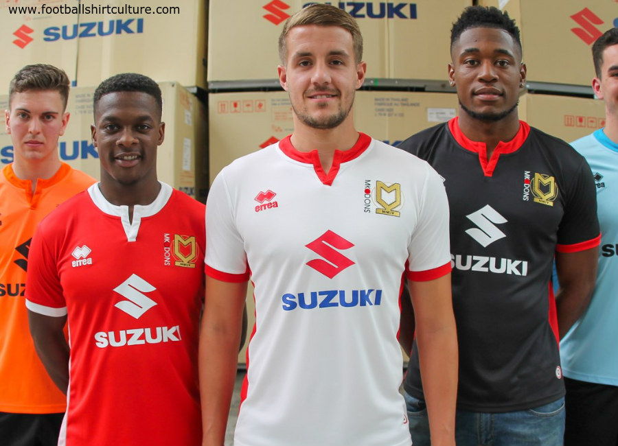 Milton Keynes Dons revealed their new 17-18 Home (white), Away (red) and Third (black) kits made by Erreà.