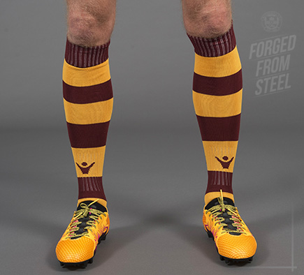 The home strip has a very traditional look and feel to it, with a return to claret shorts and the claret and amber hooped socks.