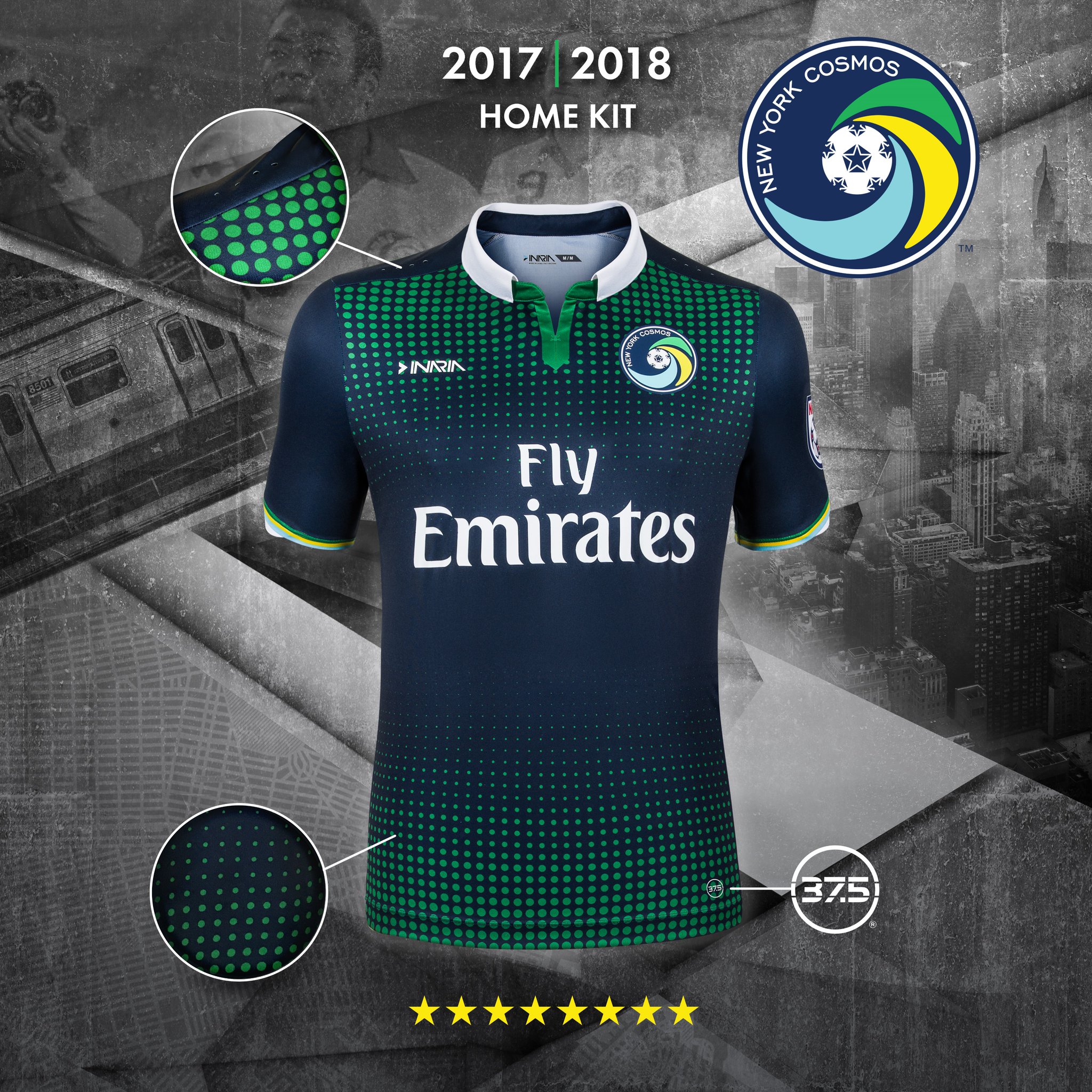 This is the New York Cosmos 2017 Home shirt by Inaria. The new kit features 37.5 ® technology – soccer’s fastest drying fabric, which dries up to five times faster than similar materials.
