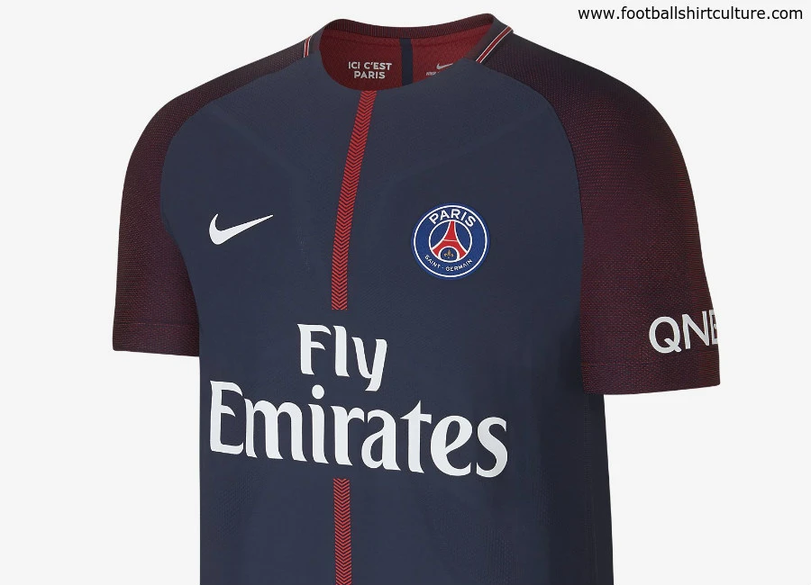 The new Paris Saint-Germain home kit for 2017-2018 allies cutting-edge Aeroswift technology with a contemporary aesthetic, reinterpreting the club’s heritage alongside a fresh application of its signature red, white and blue palette.
