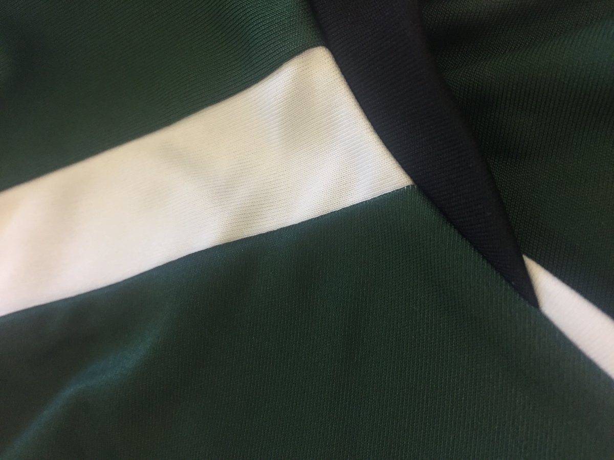 The Pilgrims' new kit is a darker shade of green compared to last season's, and also has a single white strip down the left side of the shirt.