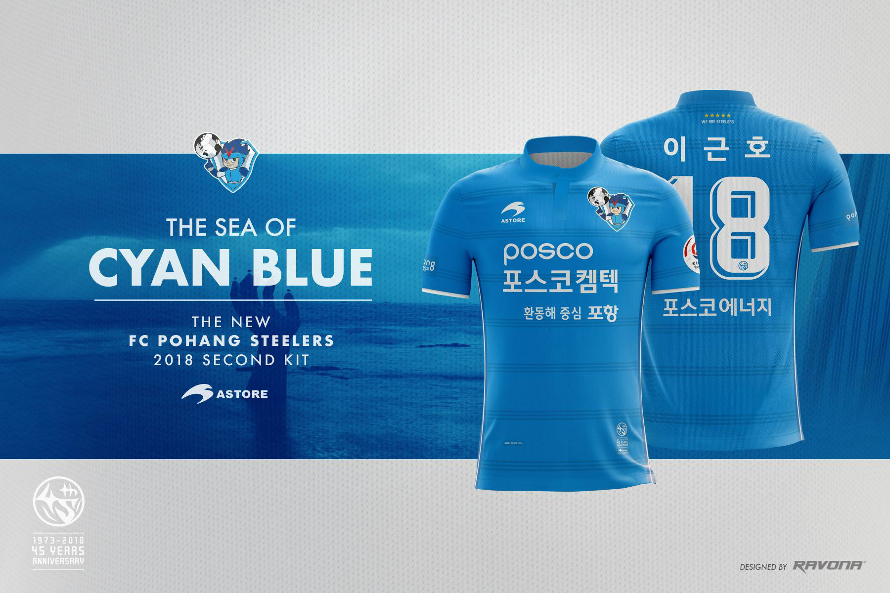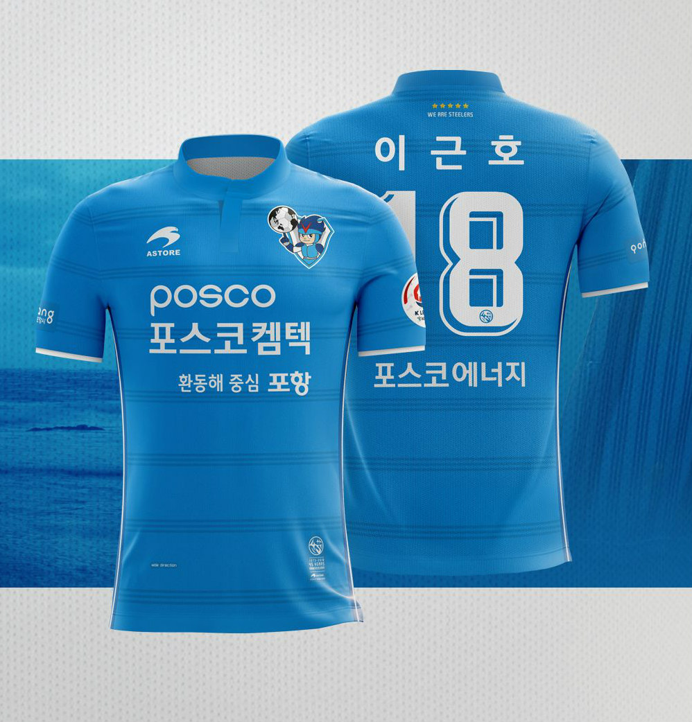 The concept of the away kit is 'The Sea of Cyan Blue'' and is commemorating the 45th anniversary of the club's foundation as Pohang Steelworks FC.
