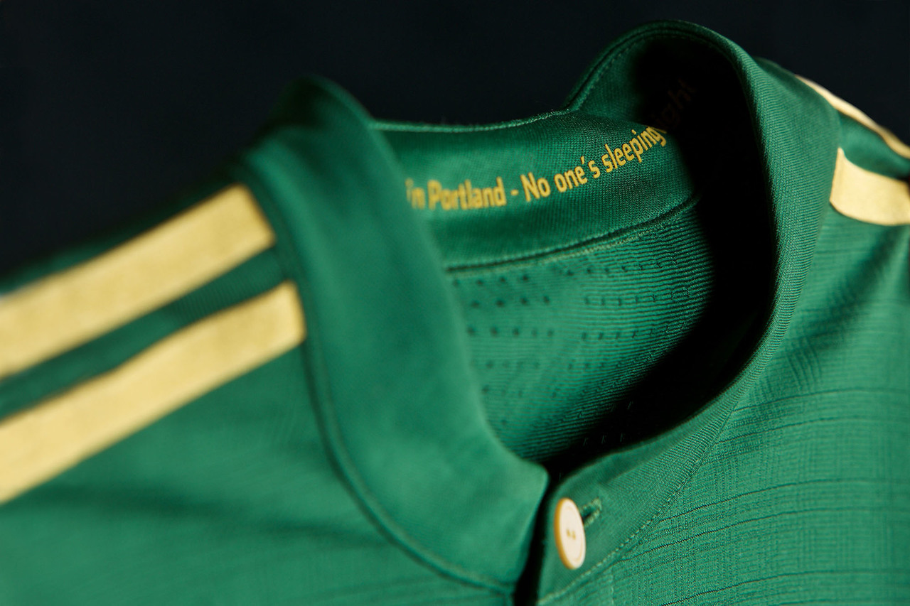 The jersey also includes a number of symbolic details that celebrate the city and the club’s soccer heritage. These include: the Portland city flag jocktag, the Stand Together axes on the back neck, and the iconic line from the Timbers Army “Party in Portland” chant “There’s a party in Portland, No one is sleeping tonight” on the neck tape.
