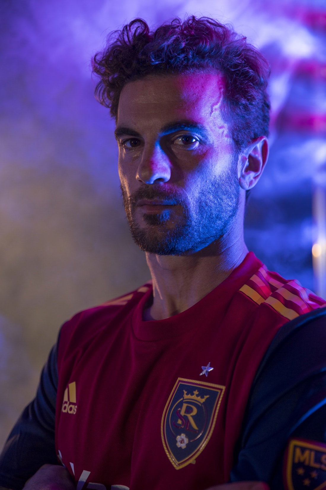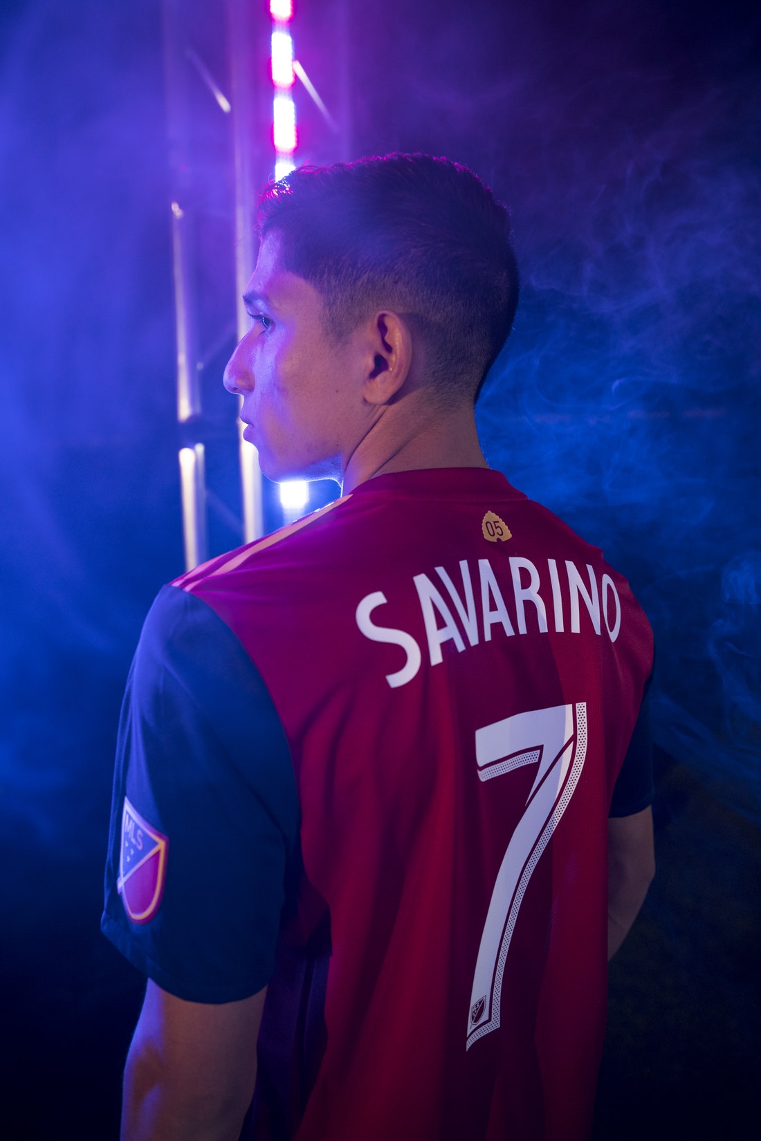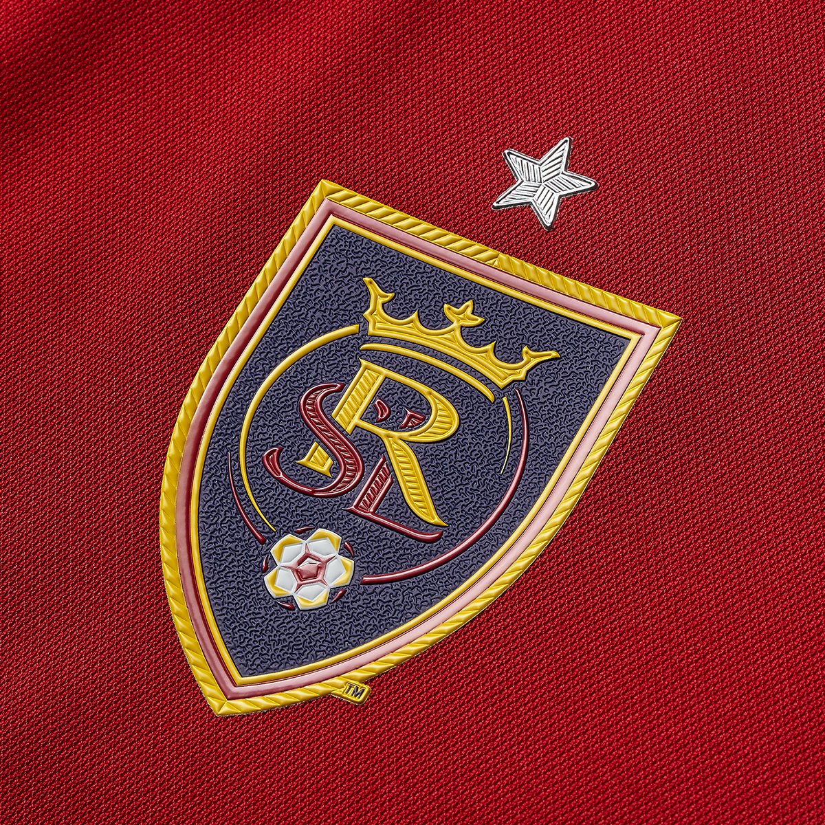 RSL’s new jersey features a claret torso with cobalt sleeves and gold trim. The sleeves are a new look for the club, who had an all-claret shirt for years.